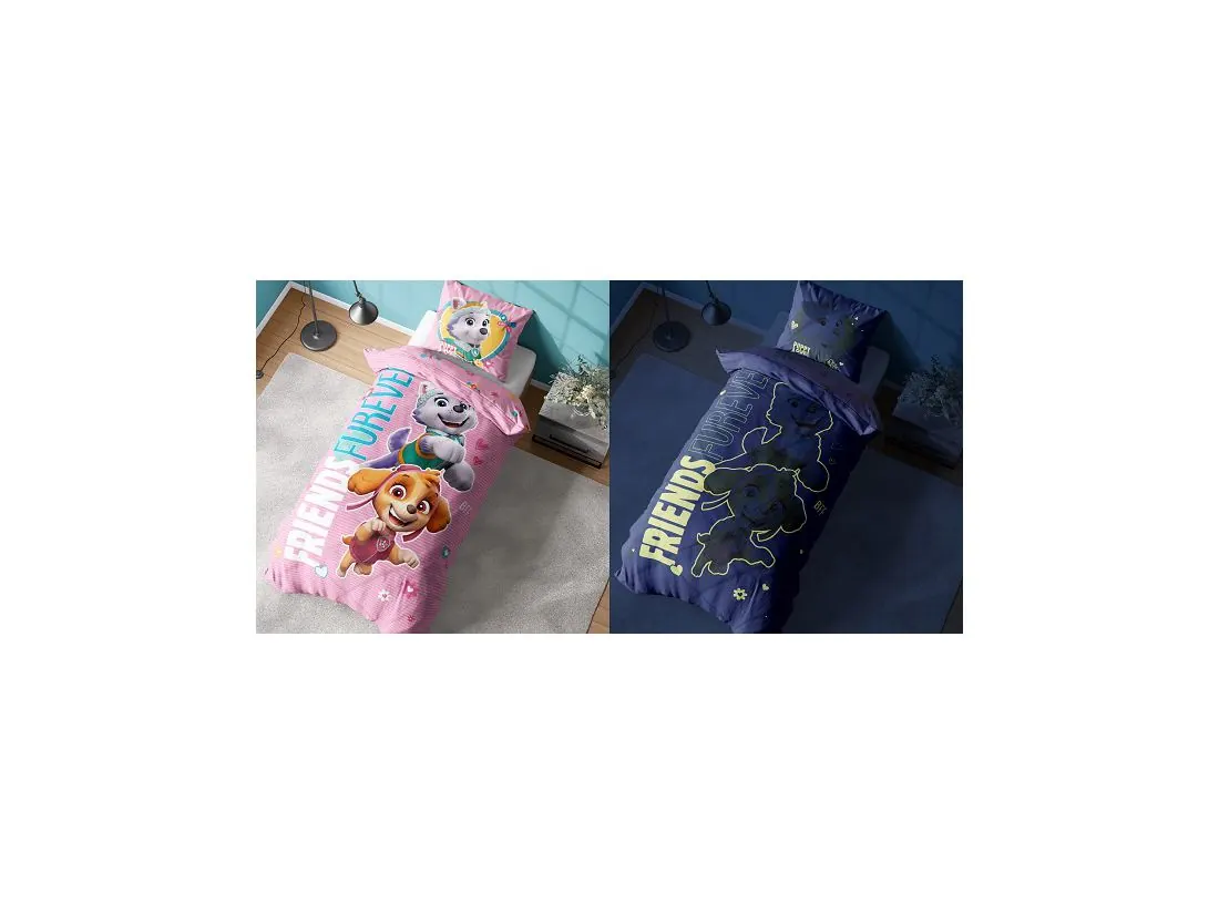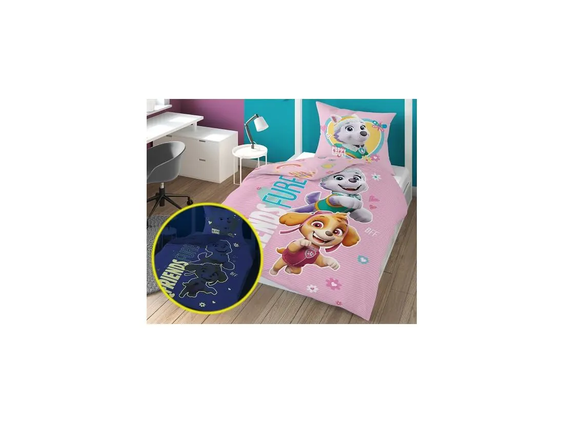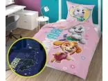 Rozpocznij niezapomnianą podróż do miasta Adventure Bay razem z Psim Patrolem. Fluorescencyjna pościel to nie tylko praktyczny element wyposażenia sypialni, ale również magia, która towarzyszy każdemu wieczorowi snu. Chase, Rubble, Skye i Marshall czekają na kolejne przygody z Twoim dzieckiem!
