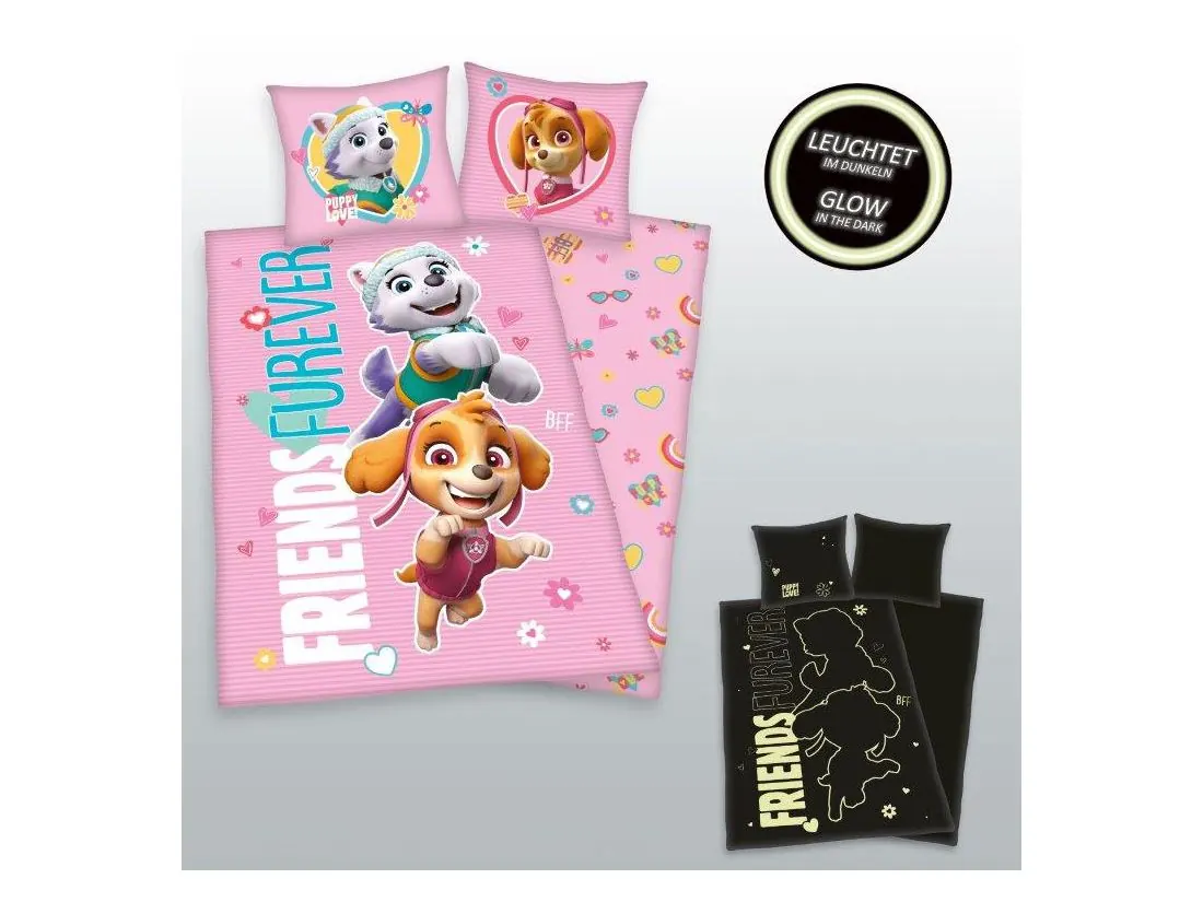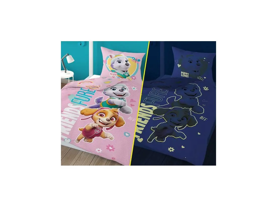 Pościel z bawełny dla dzieci 140x200+70x80 friends furrever psi patrol różowa fluo 24
