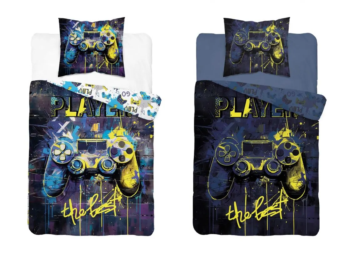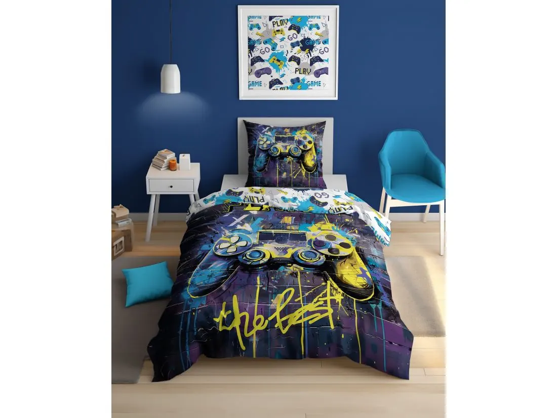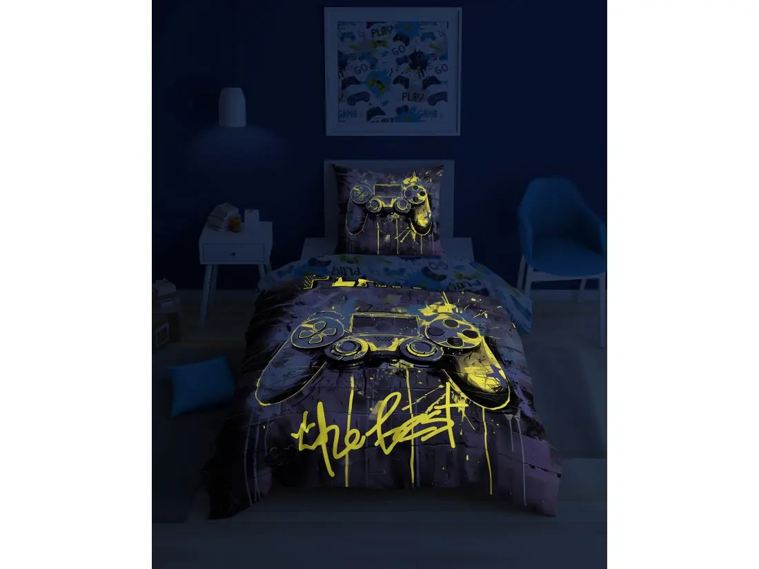 Pościel z bawełny dla dzieci 160x200+70x80 gamepad fluo 5404 a świeci w ciemności