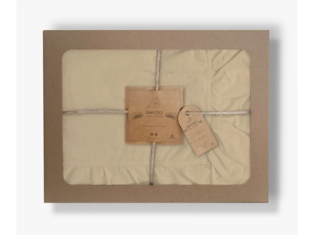 Pościel z bawełny z falbanką Limasso 160x200 Akdeniz Cream w pudełku bez prasowania