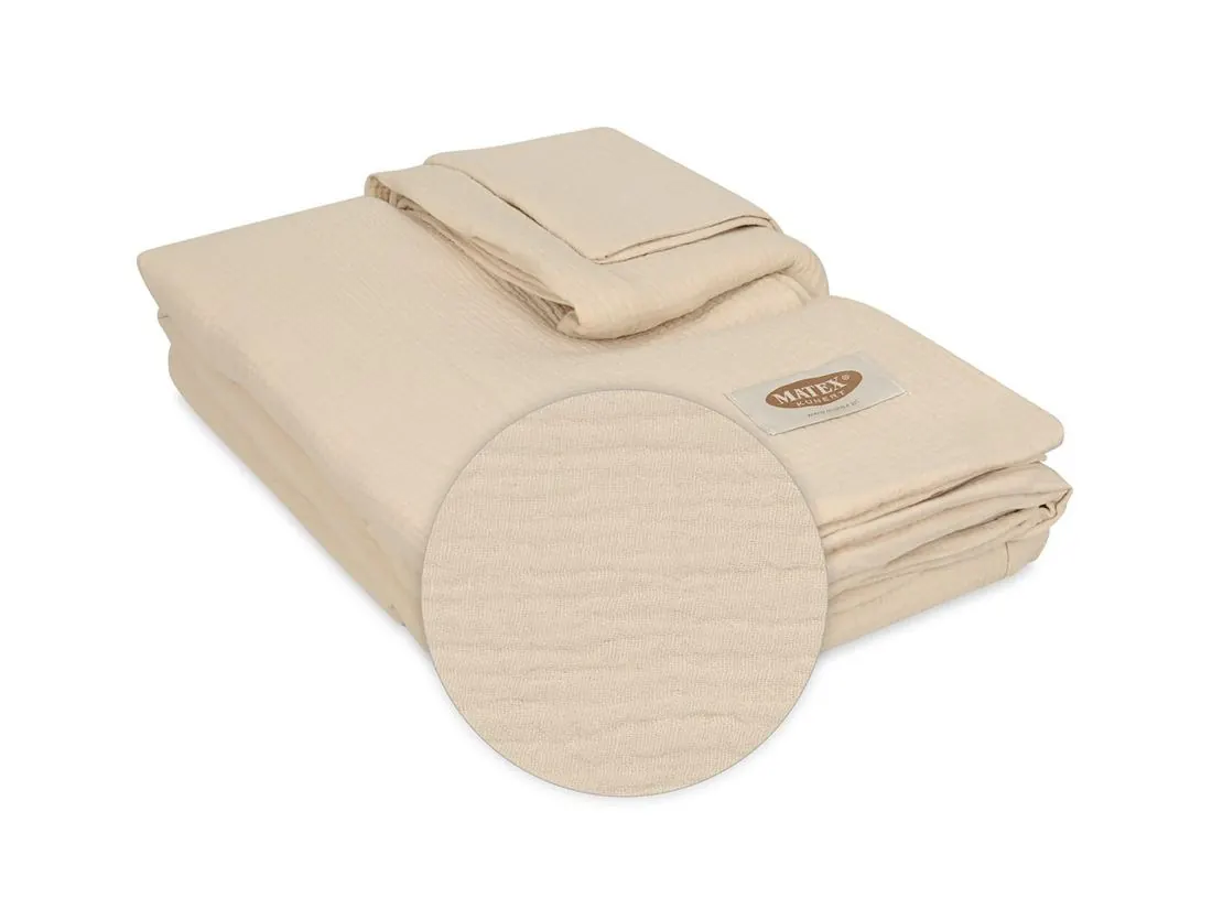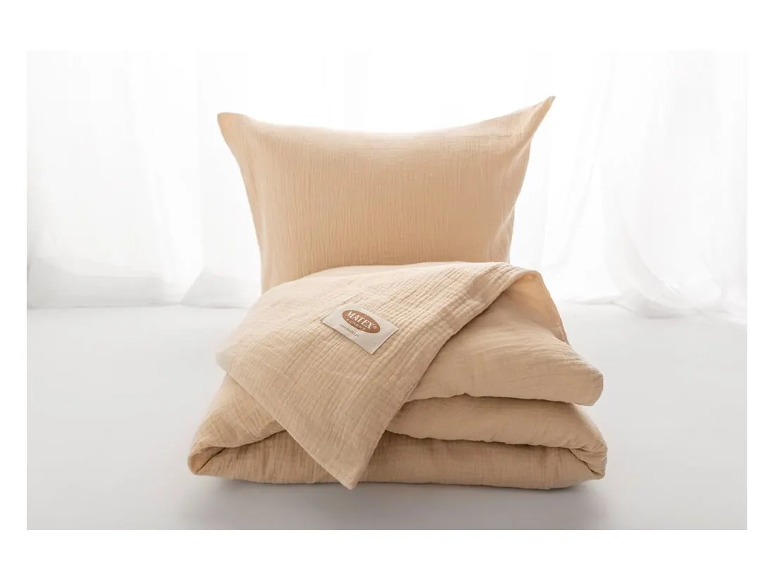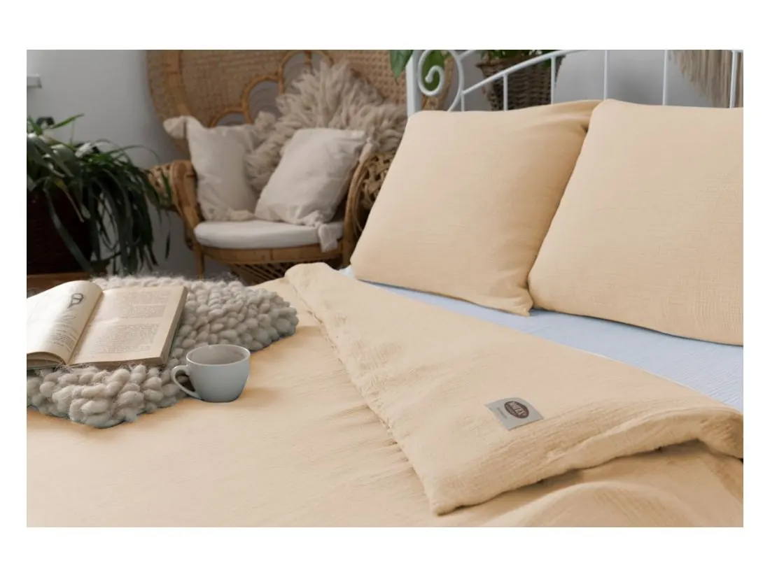 Jednobarwna pościel z muślinu 100% bawełniana, jest bardzo popularna ze względu na miękkość tkaniny oraz przewiewność, pościel posiada dobre właściwości termiczne. Muślin to tkanina bawełniana o splocie przypominającą mięsistą tetrę, posiada charakterystyczne gofrowanie- marszczenie nadając pościeli nietuzinkowy wygląd. Pościel muślinową nie musimy prasować co jest dodatkowym atutem, który oszczędza nam czas. Pościel z muślinu pierzemy w temperaturze max 30 stopni, nie suszymy w suszarkach bębnowych - które może uszkodzić tkaninę tj może spowodować skurczenie tkaniny.