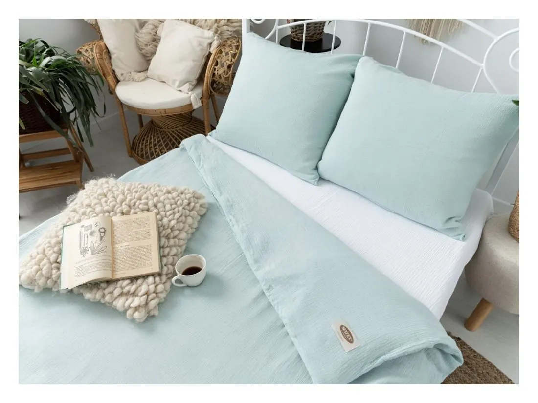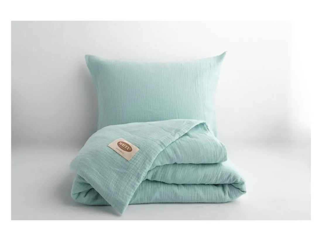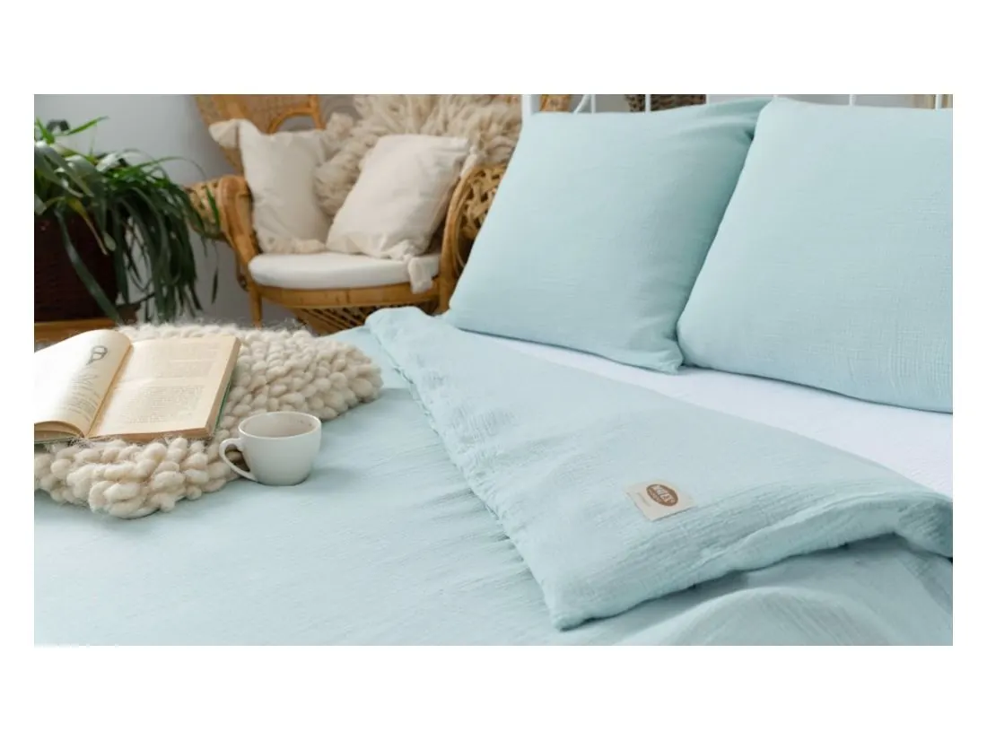 Pościel z muślinu 160x200 +2/70x80 jednobarwna miętowy muślinowa