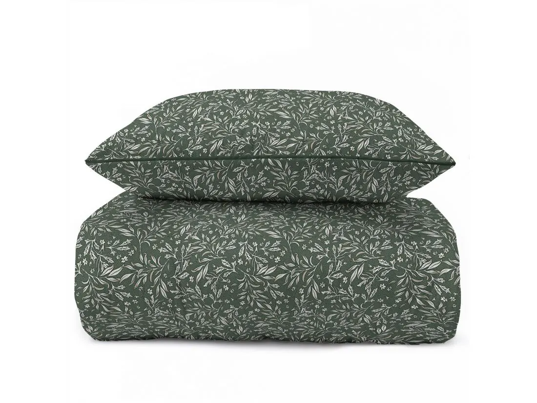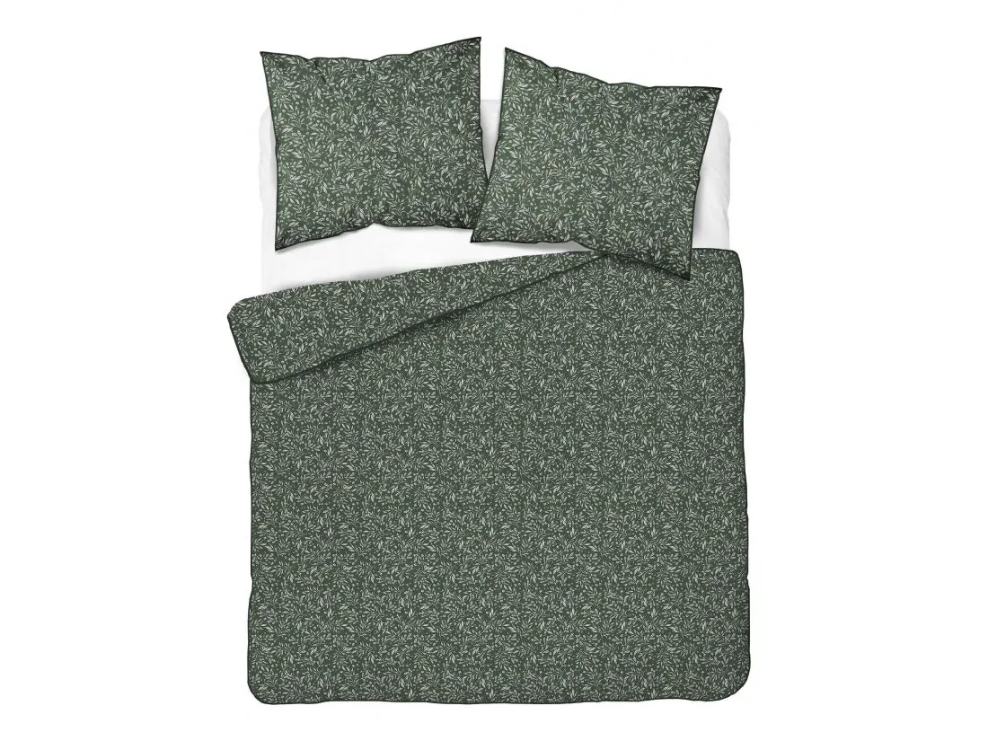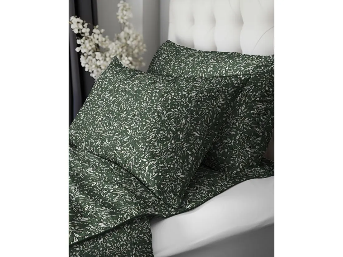Pościel z perkalu 220x200 + 2/70x80 z lamówką + torba, listki na zielonym tle Lame Percale 5588 a