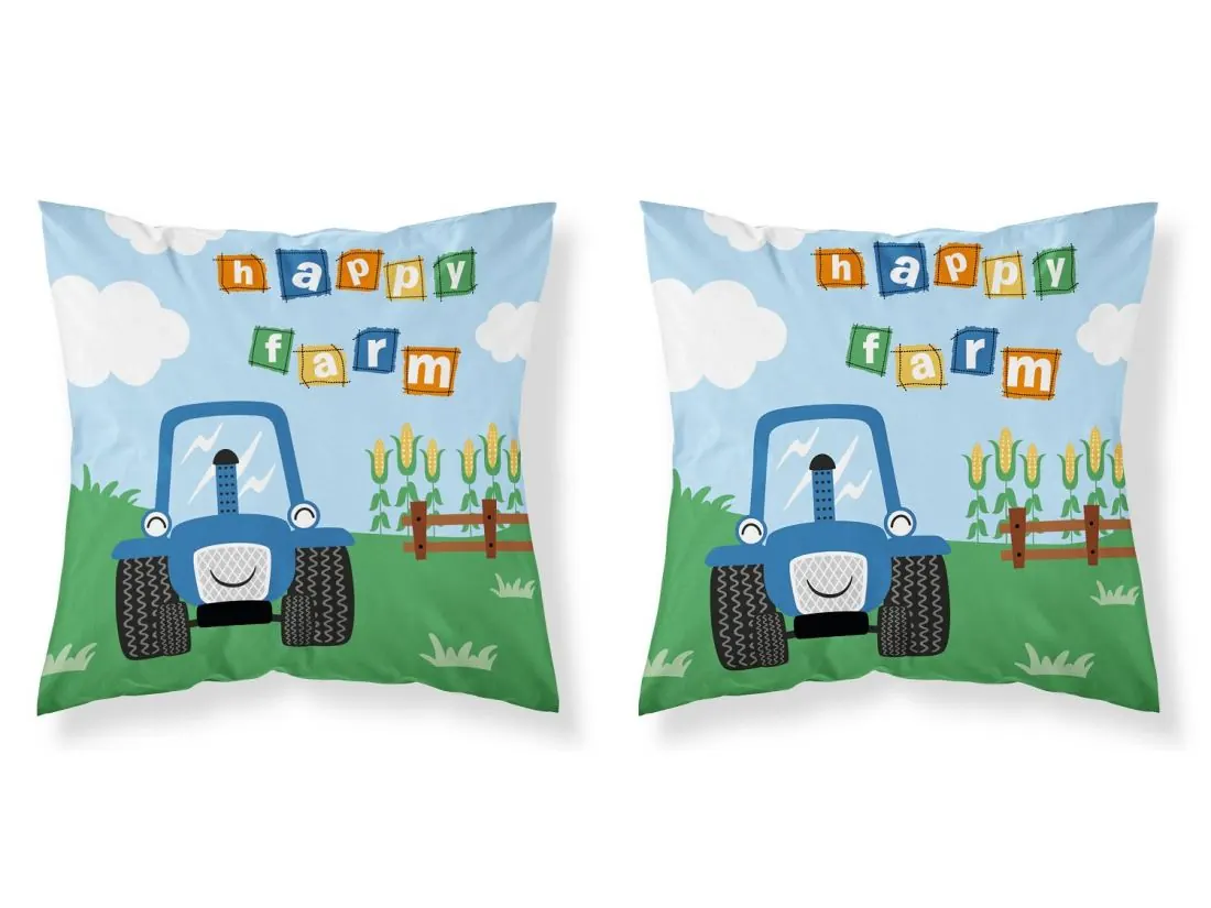 Poszewka dziecięca bawełniana 40x40 cm dla dzieci happy farm niebieski traktor psba 040 a