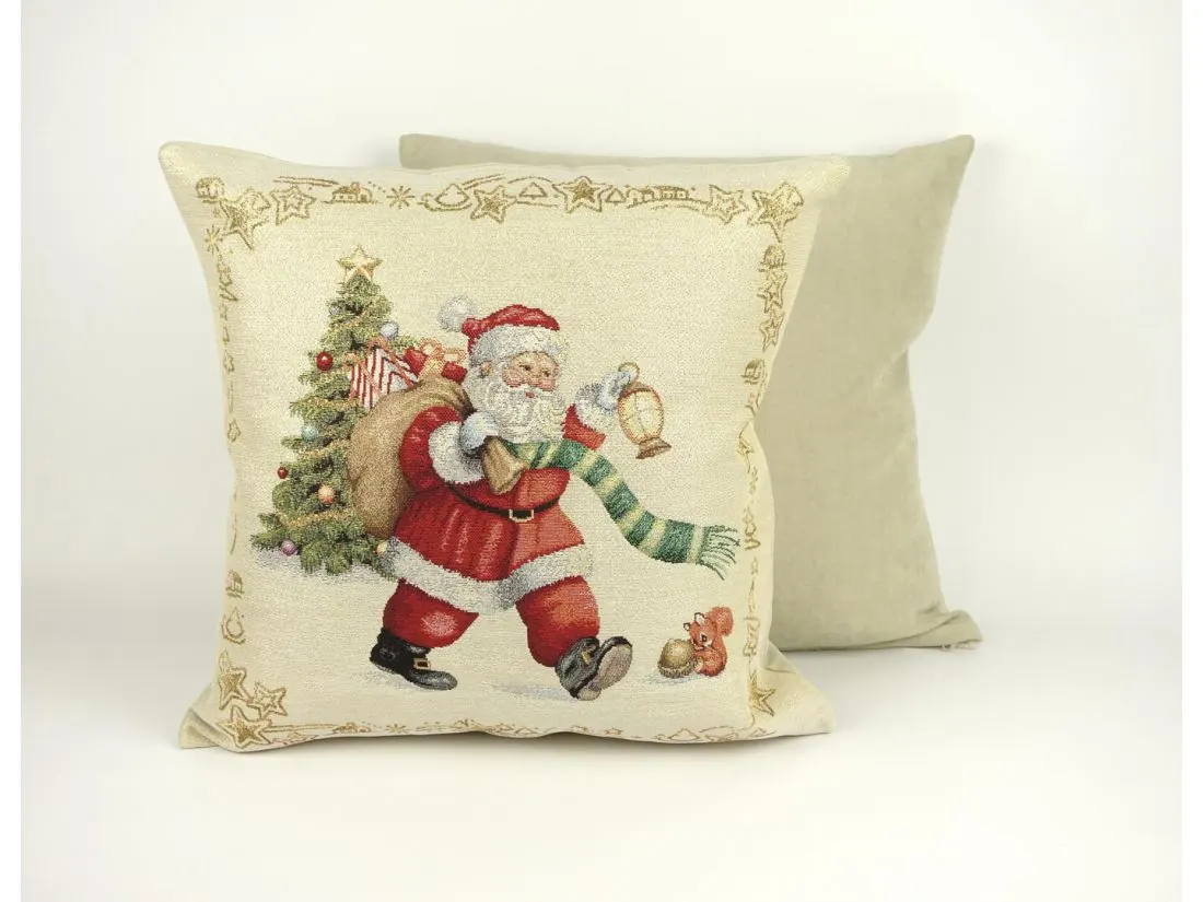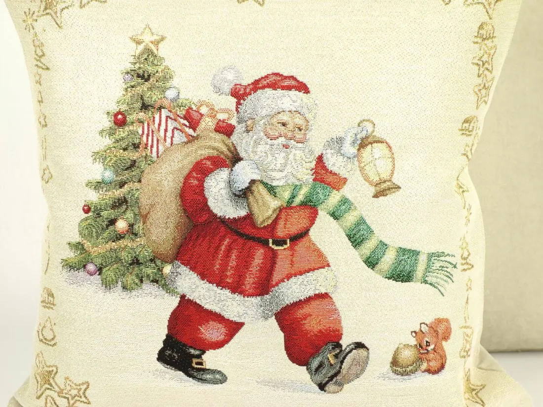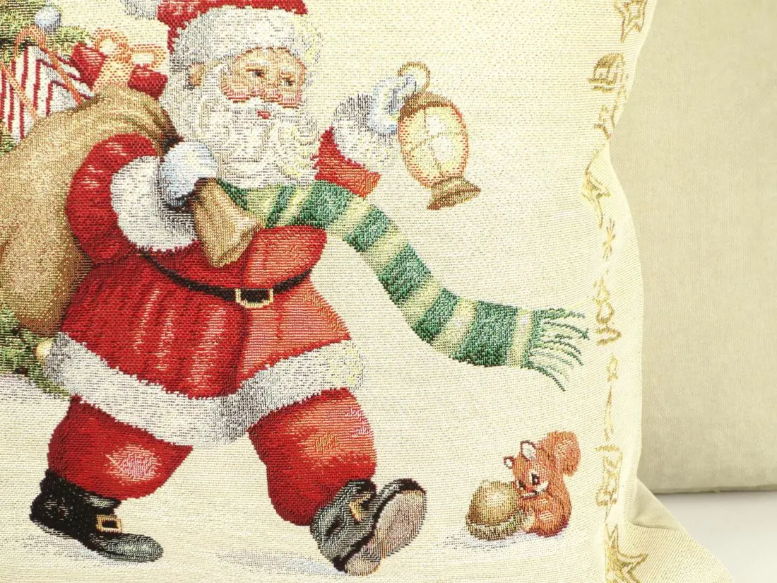 Poszewka świąteczna gobelinowa mikołaj z prezentami nr. 265 SlodkieSny 45x45 cm gobelin złota nitka