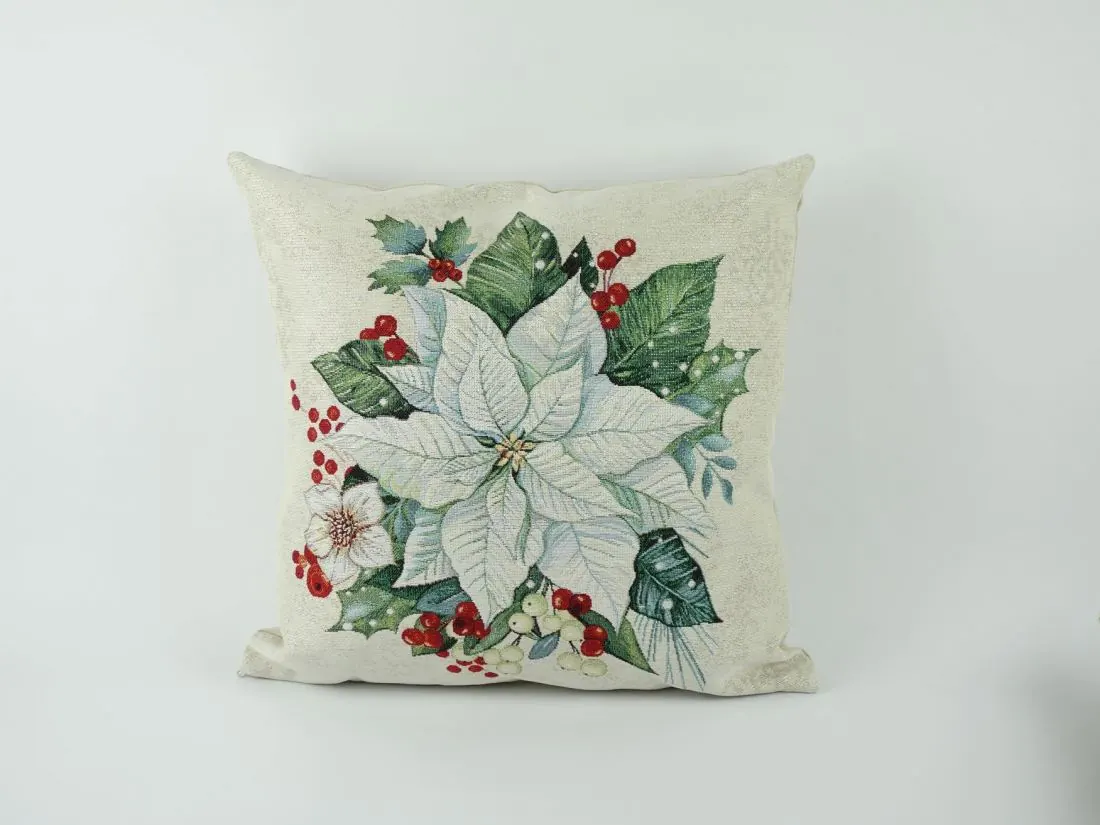 Poszewka świąteczna gobelinowa nr. 205 b biała gwiazda betlejemska SlodkieSny 45x45 cm gobelin srebrna nitka