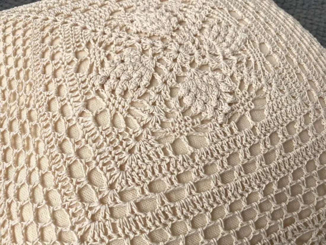 Poszewka dekoracyjna szydełko 40x40 cm w kolorze beżowym to doskonały dodatek do każdego wnętrza, który łączy elegancję z przytulnością. Przód poszewki został ręcznie wykonany z najwyższej jakości nici 100% bawełnianych, co gwarantuje unikalny wygląd i trwałość. Tył uszyto z gładkiego materiału 100% poliestrowego, co zapewnia wygodę użytkowania i wytrzymałość. Poszewka jest wyposażona w praktyczne zapięcie na zamek błyskawiczny, ułatwiające jej zakładanie i zdejmowanie.Niepowtarzalne wzornictwo oraz naturalna tekstura ręcznego szydełkowania sprawią, że ta dekoracyjna poszewka podkreśli charakter zarówno nowoczesnych, jak i rustykalnych wnętrz. Stworzy ciepłą, sielską atmosferę, dodając uroku każdemu pomieszczeniu. Idealna na kanapę, fotel lub łóżko, aby uczynić dom jeszcze bardziej przytulnym i stylowym.
