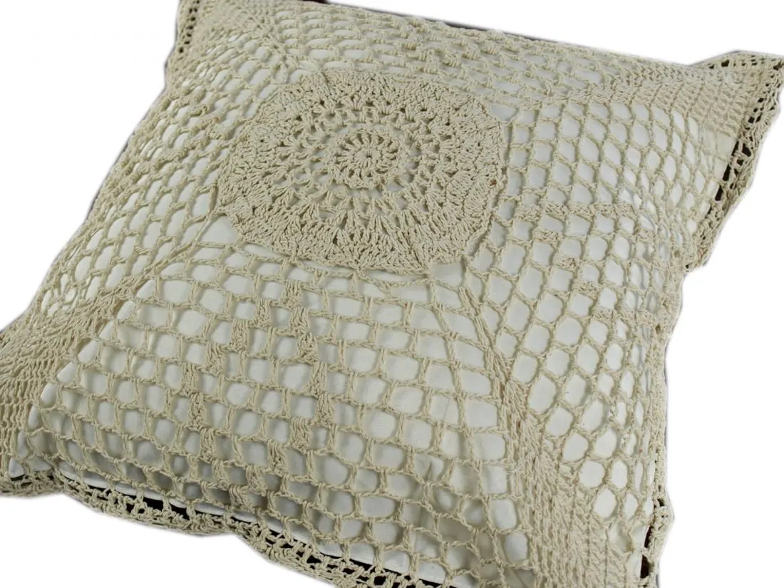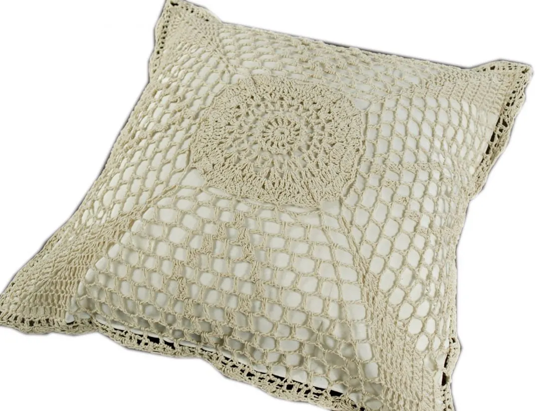Poszewka dekoracyjna szydełko w rozmiarze 40x40 w kolorze beżowym.