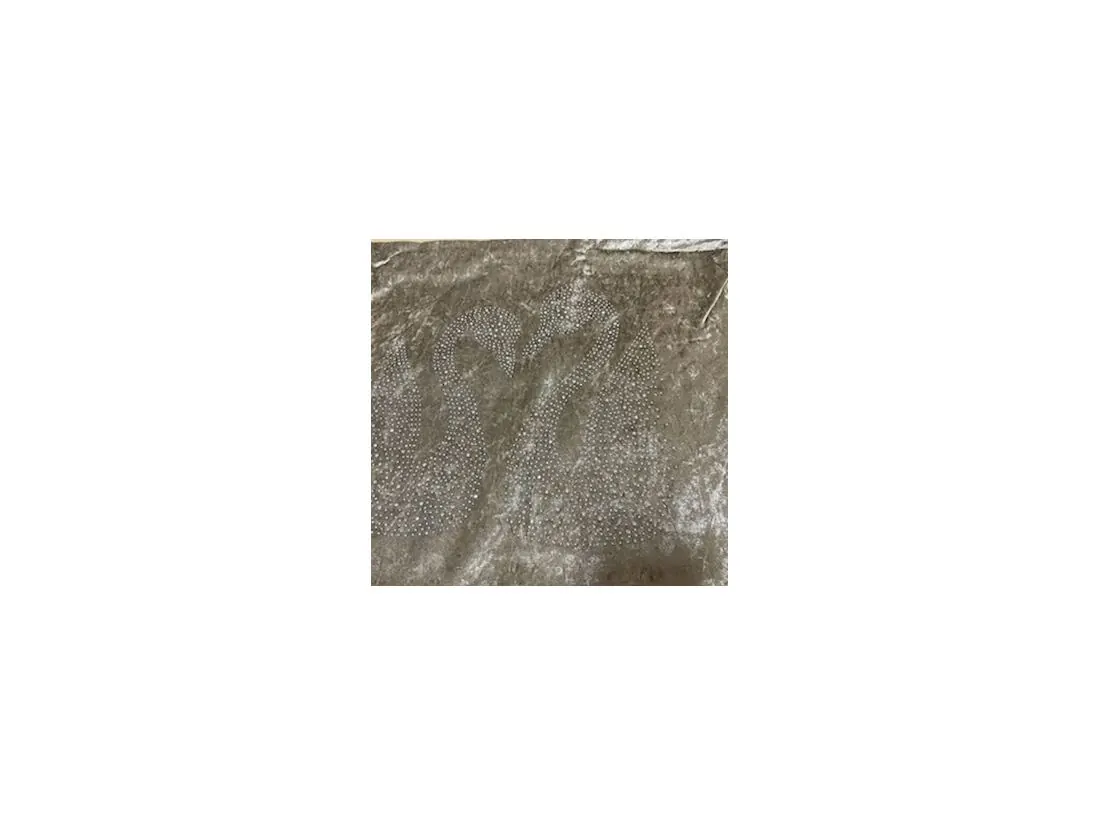 Poszewka dekoracyjna welurowa w rozmiarze 40x40 cm, typu jaś została wykonana z tkaniny 100% poliester w kolorze naturalnym. Wzór łabędzi na poszewce został wykonany poprzez wyklejenie sztucznymi cyrkoniami. Poszewka jednostronna tj wzór na jednej stronie, druga strona jednobarwna, poszewka zapinana na zamek.