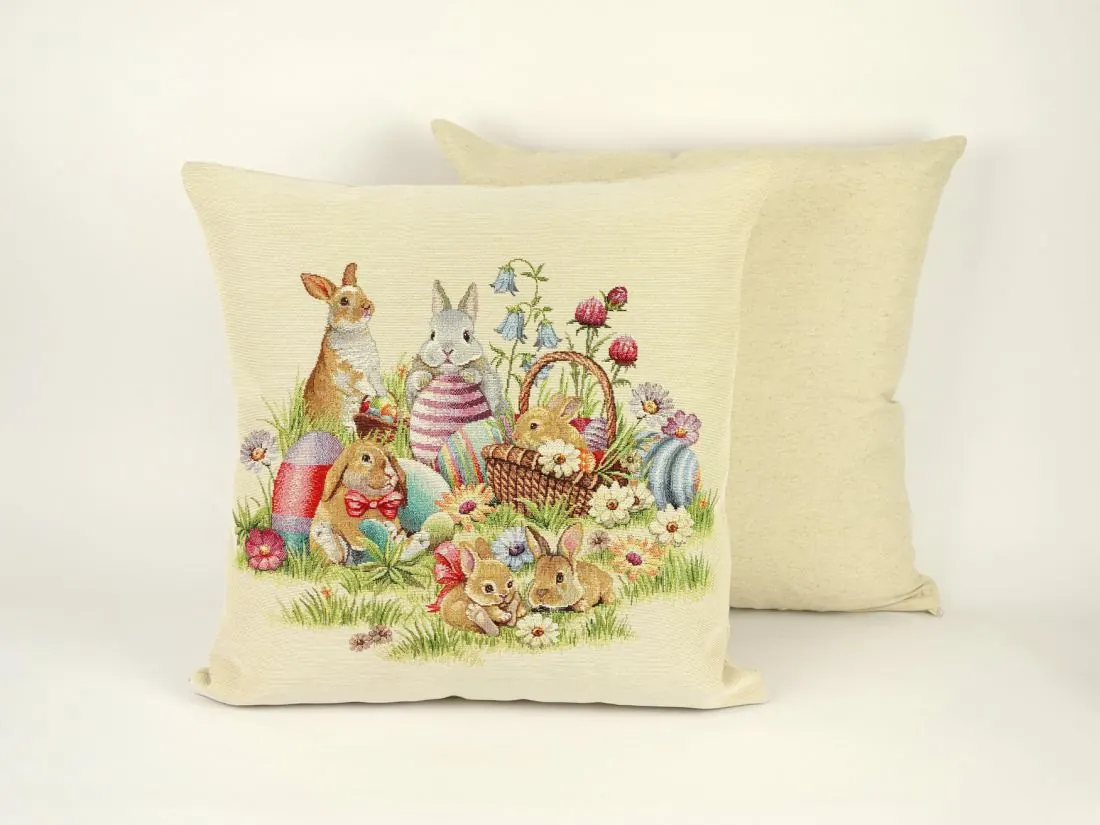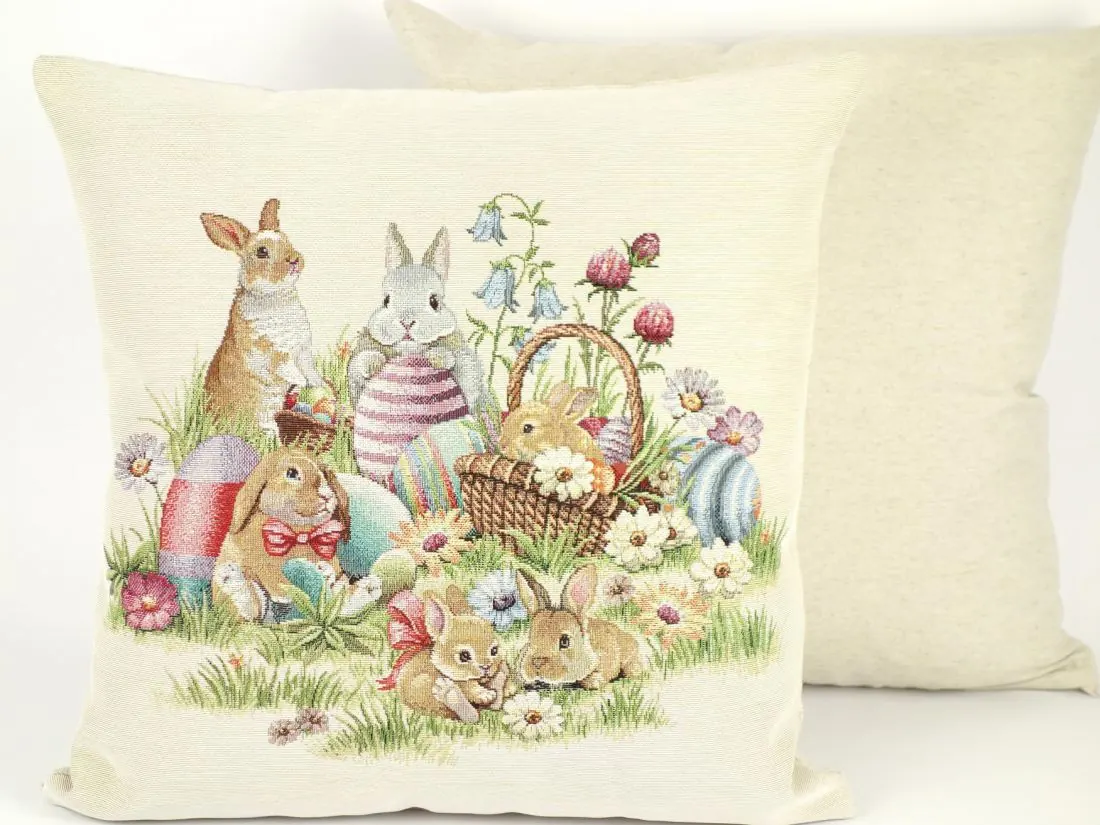 Poszewka wielkanocna gobelinowa zajączki na łące wz. 309 SlodkieSny 45x45 cm