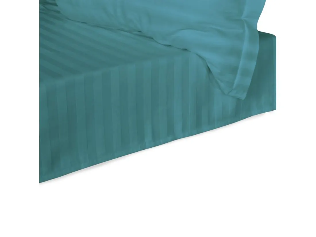 Prześcieradło bambusowe satyna bawełniana 220x260 Turkus morski bez gumki Strpie paski turkusowe