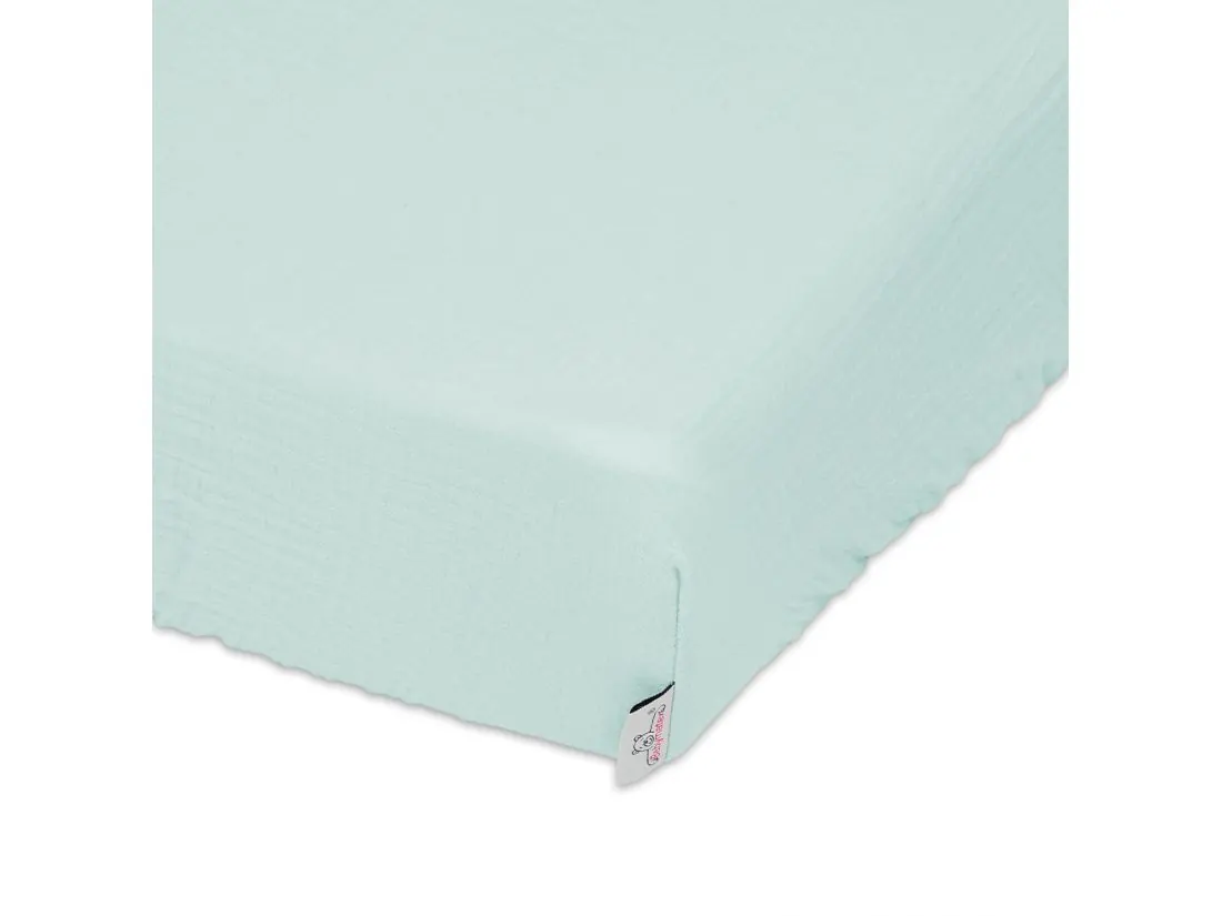 Prześcieradło z muślinu 60x120 z gumką dziecięce miętowe 33 muślinowe