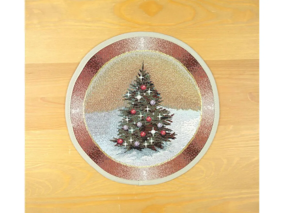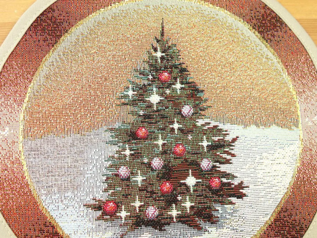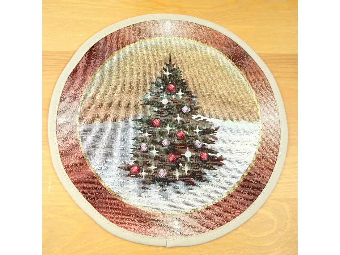 Serwetka gobelinowa świąteczna śr. 23 cm beżowa świąteczna zima nr sw 228 SlodkieSny okrągła