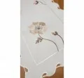 Dekoracyjny haftowany bieżnik w rozmiarze 40 x 90 cm w kształcie prostokątnym został wykonany z tkaniny 100 % poliestrowej w kolorze kremowo beżowym.