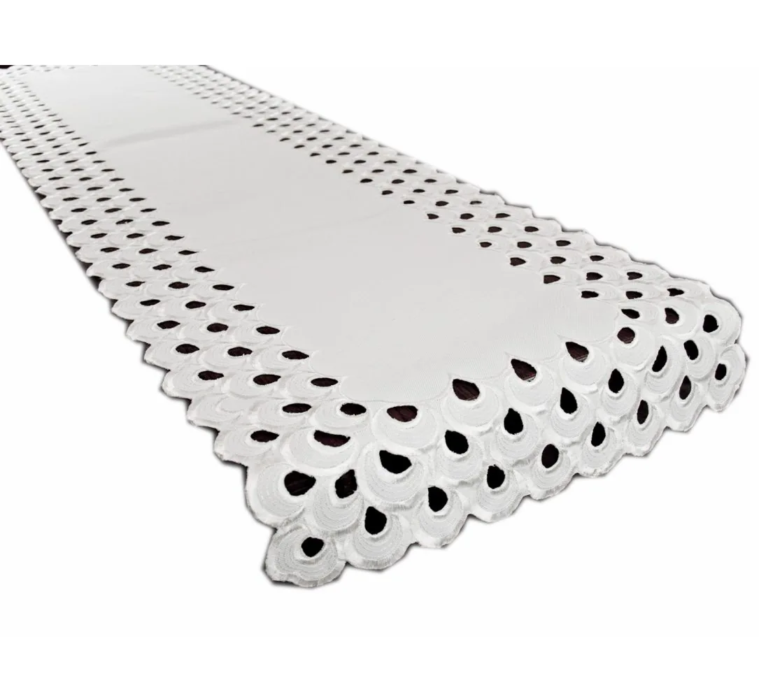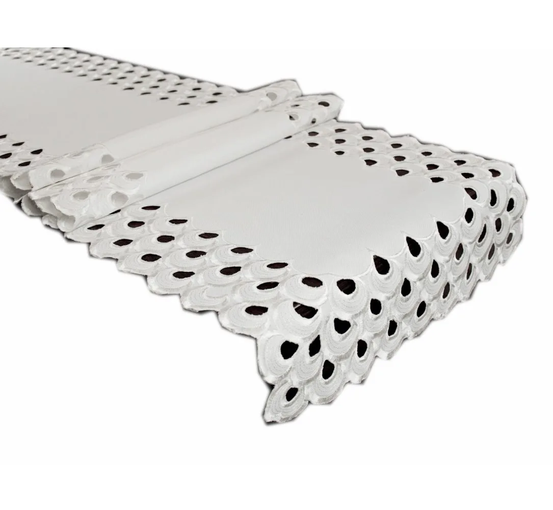 Nakładka charakteryzuje się nowoczesnym desingiem, prostym wzorem oraz zawsze modnym kremowym kolorem. Urocze haftowane białe łezki dodają delikatności oraz ukażą urok niejednej stylizacji stołu, komody, ławy. To idealny dodatek do każdego wnętrza na co dzień oraz na wyjątkowe okazje.
