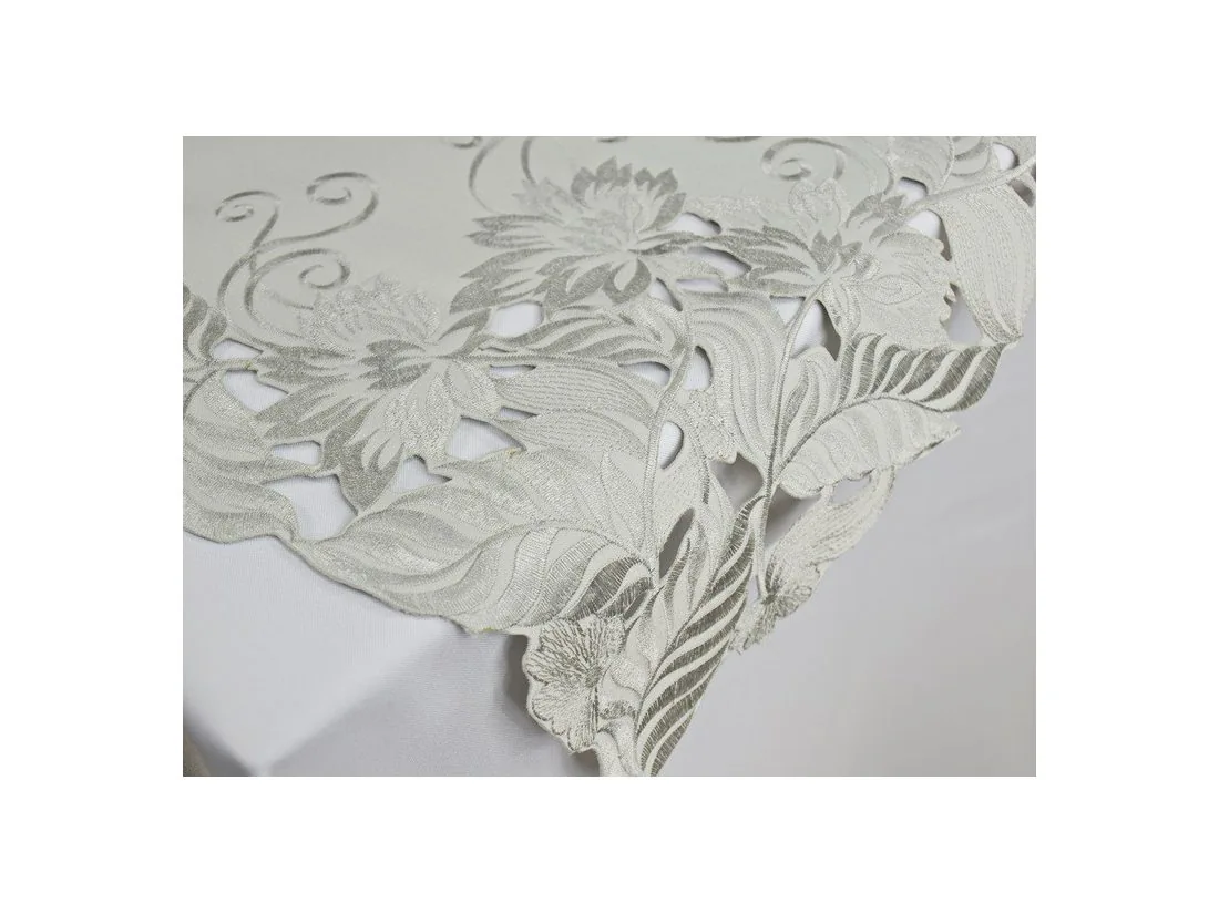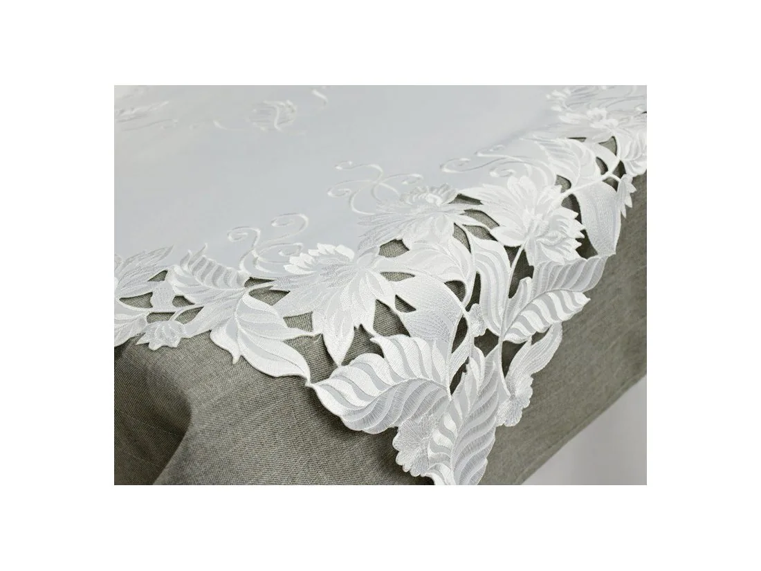 Elegancki haftowany bieżnik w rozmiarze 85 x 85 cm +/- 2 % w kolorze białym.