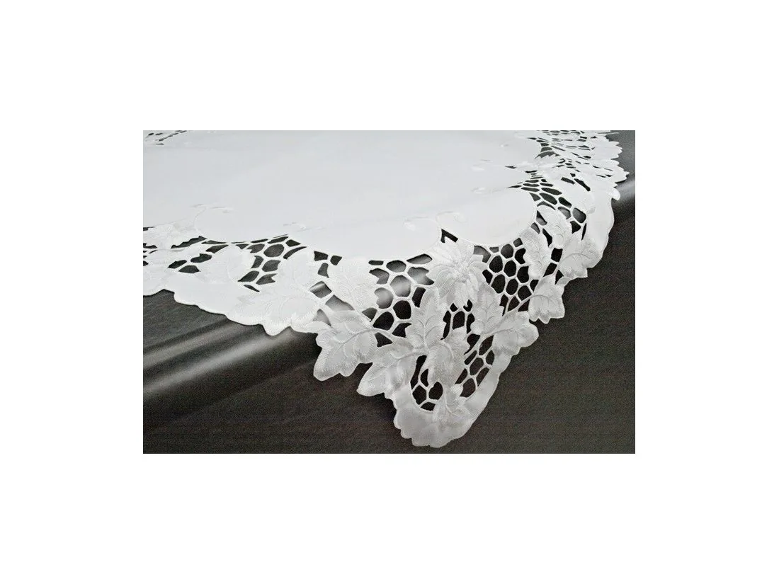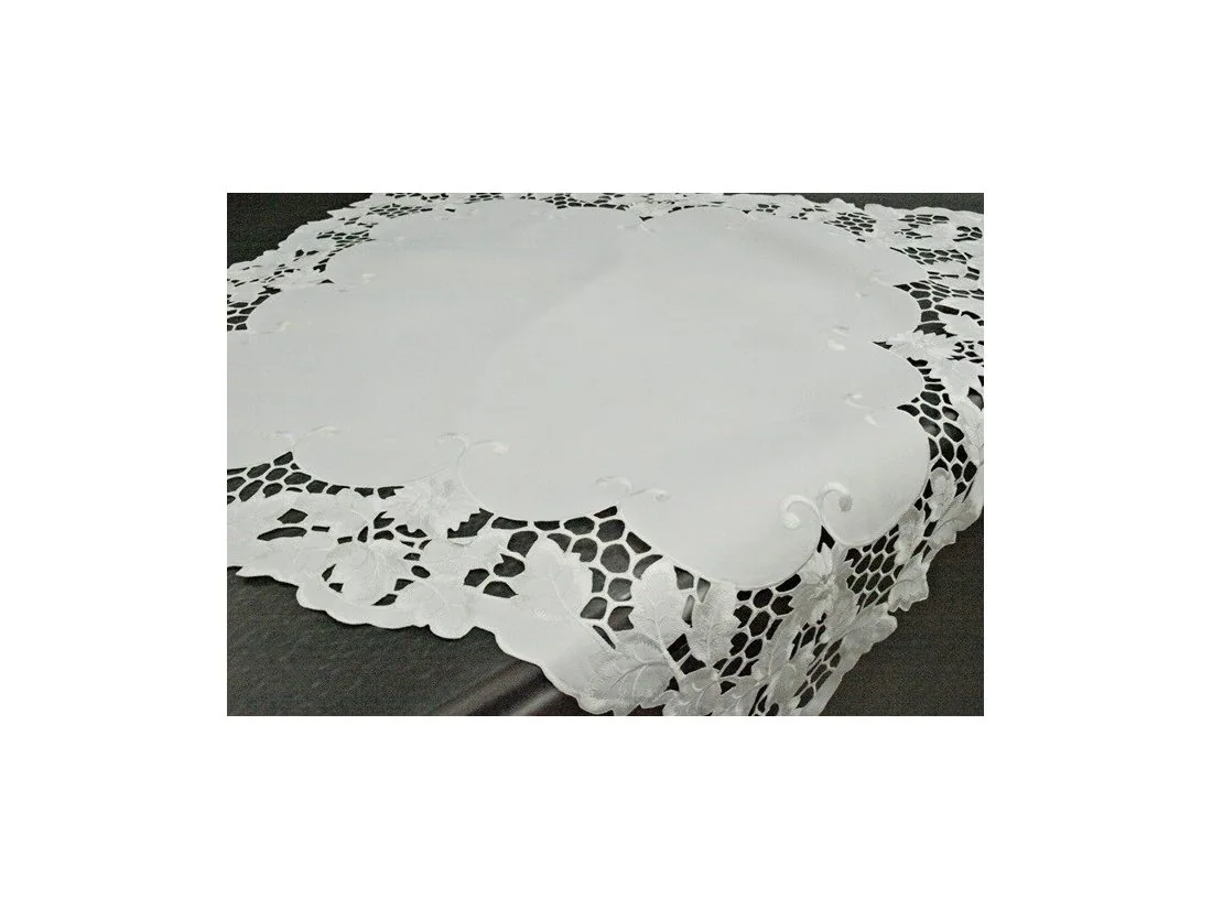 Elegancki haftowany bieżnik w rozmiarze 85x85 cm w kształcie kwadratowym w kolorze białym.