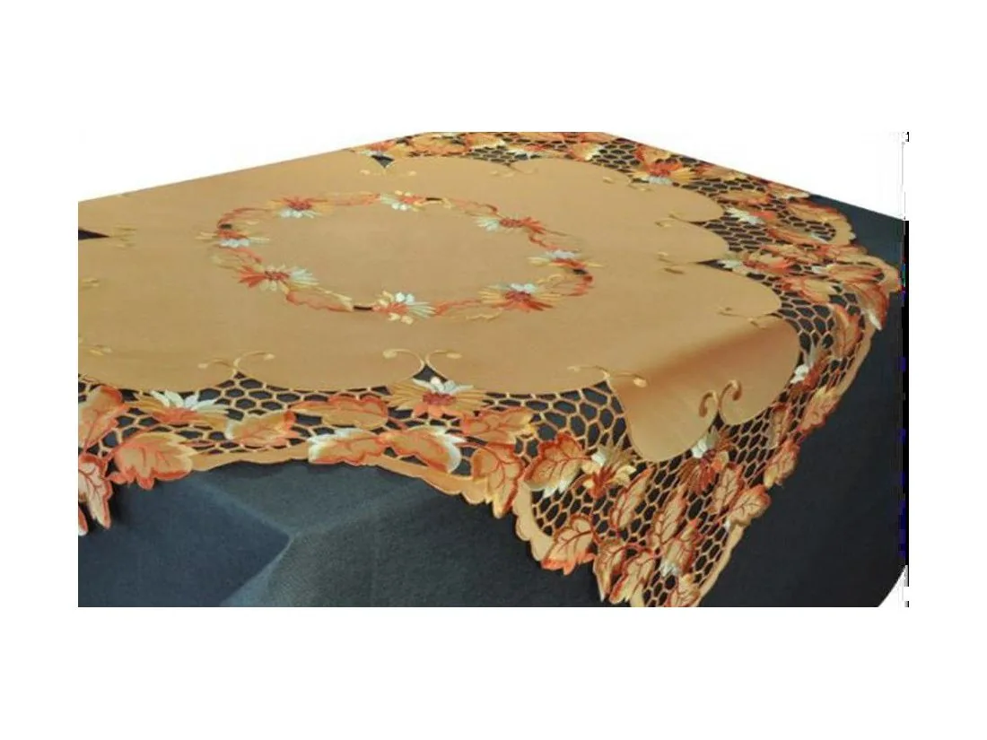 Bieżnik haftowany nakładka w rozmiarze 85x85 cm w kolorze pomarańczowym. Nakładka w kształcie kwadratowym została wykonana z tkaniny 100 % poliestrowej.