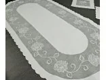 Bieżnik nakładka - owal z rożą biały - 60x120 cm - wz. 822