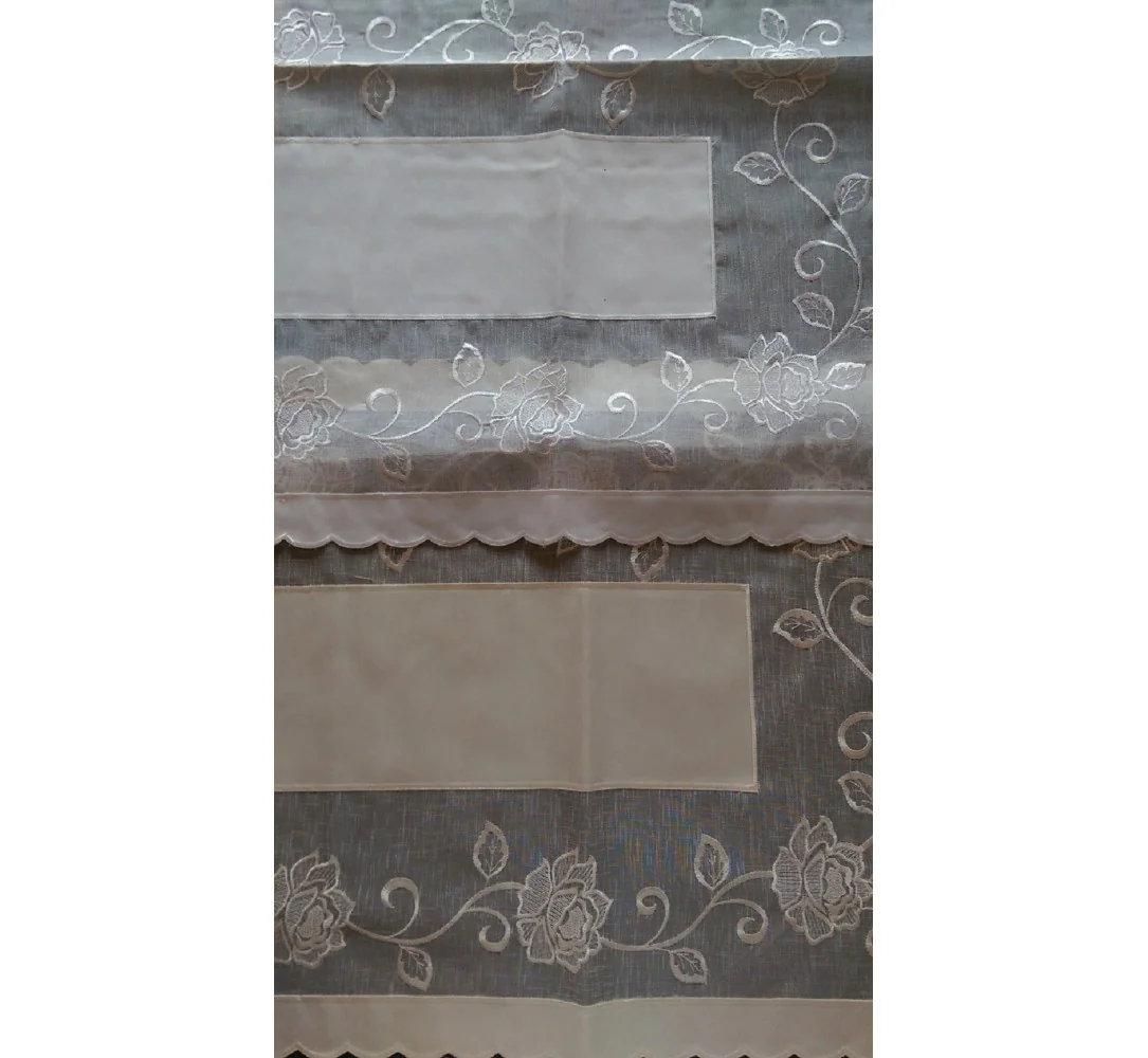 Bieżnik z haftem 60x120 cm został wykonany z wysokiej jakości tkaniny poliestrowej, dzięki starannemu połączeniu tkaniny z woalem oraz delikatnym haftem w kolorze białym z motywem delikatnej róży nakładka będzie ozdobą każdego wnętrza.
