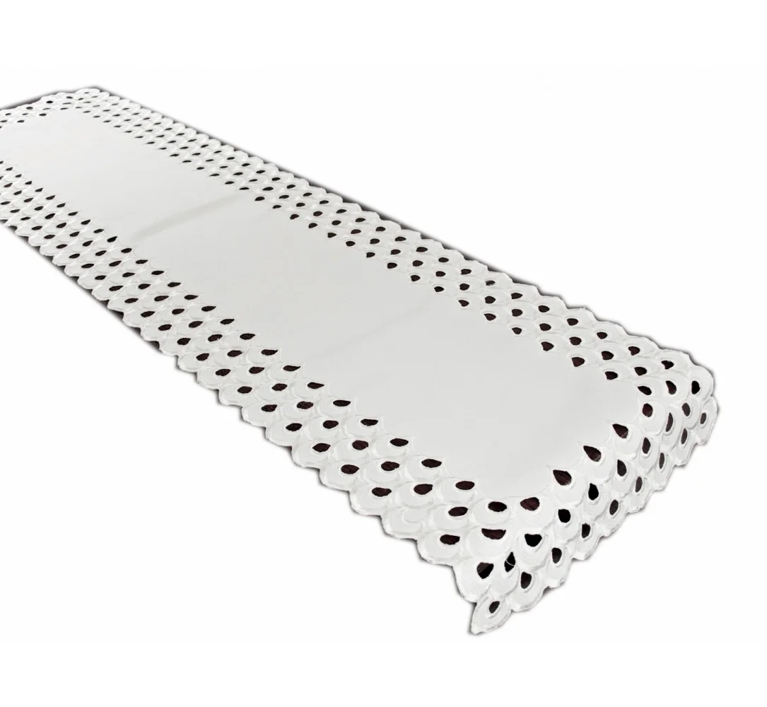 Nakładka charakteryzuje się nowoczesnym desingiem, prostym wzorem oraz zawsze modnym kremowym kolorem. Urocze haftowane białe łezki dodają delikatności oraz ukażą urok niejednej stylizacji stołu, komody, ławy. To idealny dodatek do każdego wnętrza na co dzień oraz na wyjątkowe okazje.
