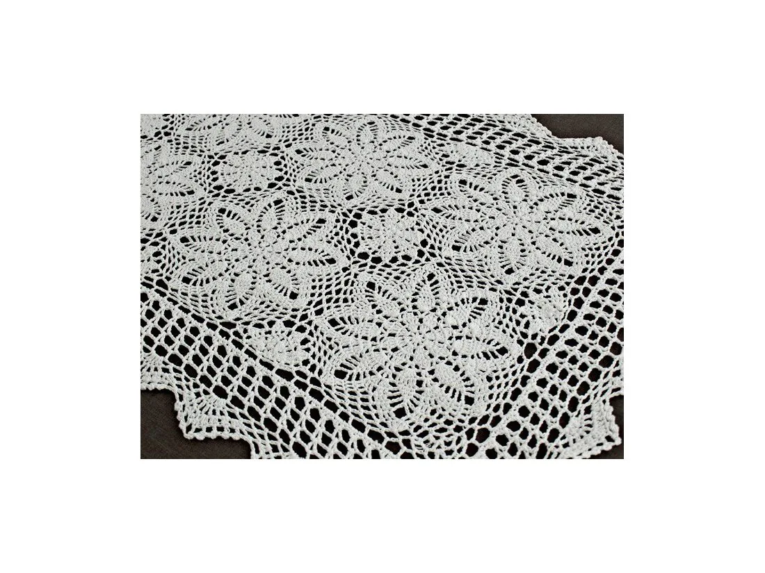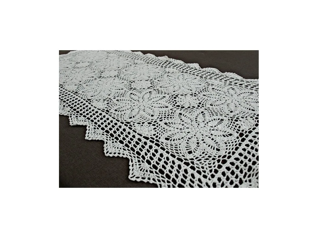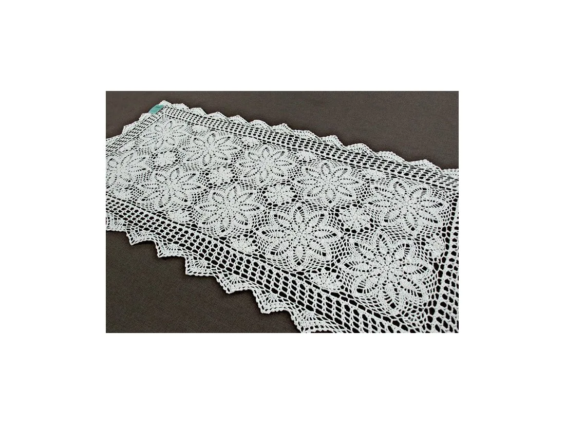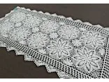 Bieżnik szydełkowy w rozmiarze 60x120 cm został wykonany z nici 100 % bawełnianej w kolorze białym.