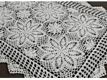 Bieżnik szydełkowy w rozmiarze 60 x 120 cm w kształcie prostokątnym został wykonany z nici 100 % bawełnianych w kolorze białym.