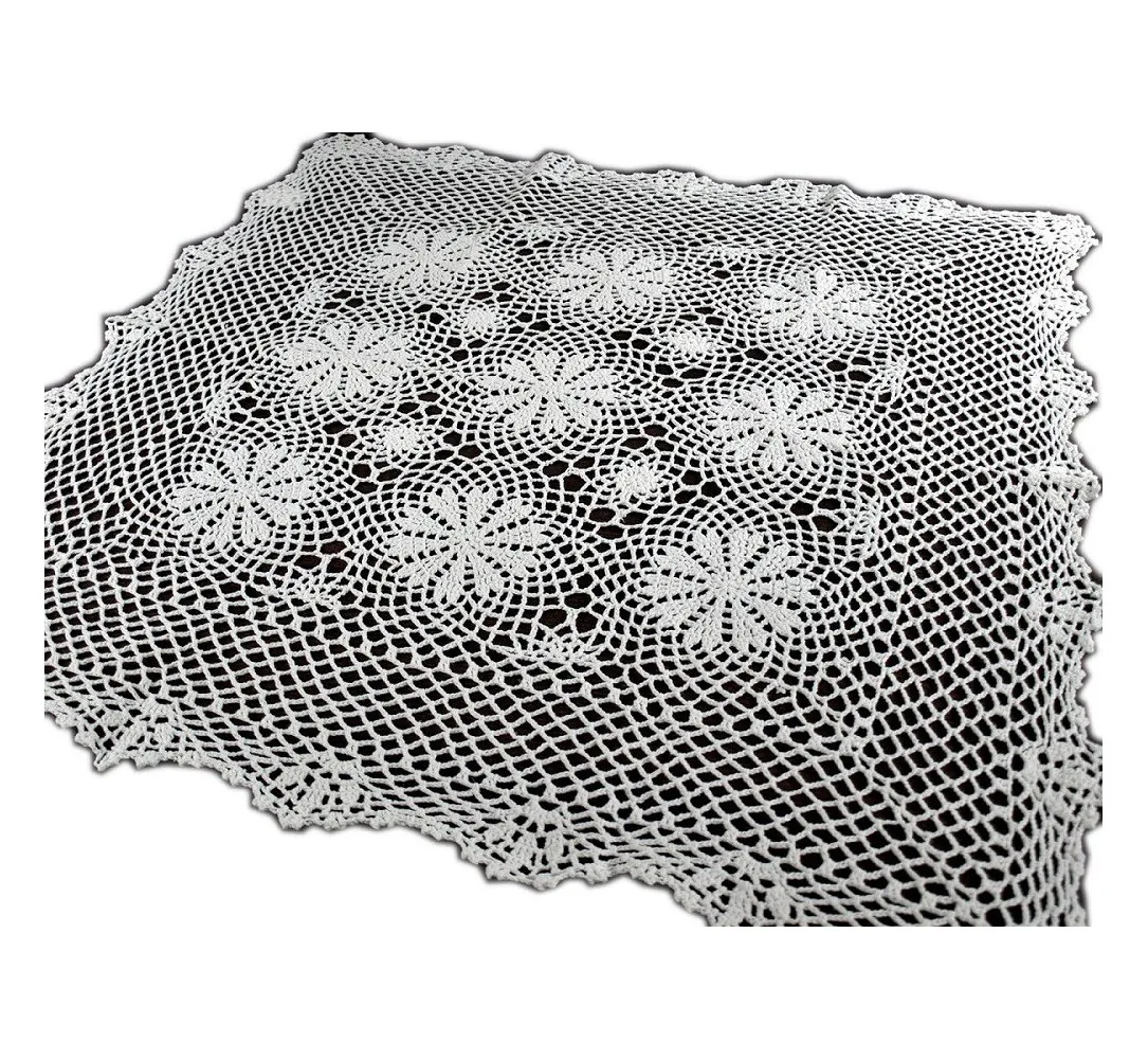Bieżnik szydełkowy w rozmiarze 85 x 85 cm w kształcie kwadratowym został wykonany ze 100 % bawełnianych nici w kolorze białym, nakładka została metodą szydełkową- ręcznie robiona.