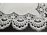 Koronka/gipiura zdobi zarówno środkową część jak i brzegi obrusu.