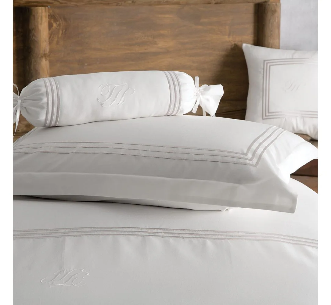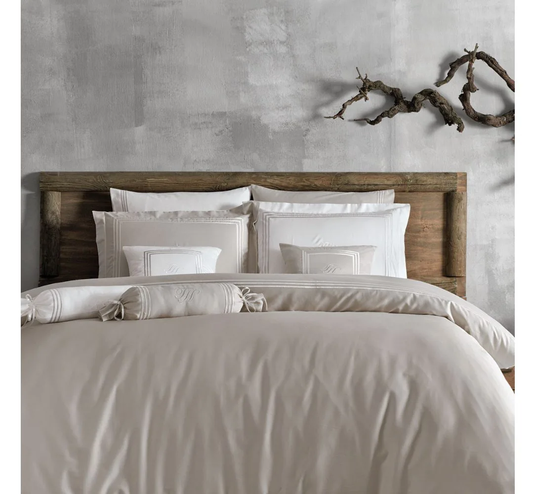 Luksusowa pościel 6 elementowa wzór Line Beige w rozmiarze 200 X 220 cm firmy TIVOLYO HOME z kolekcji Embroidery Satin, to ekskluzywna pościel dla każdego kto w swojej sypialni ceni luksus i elegancje.