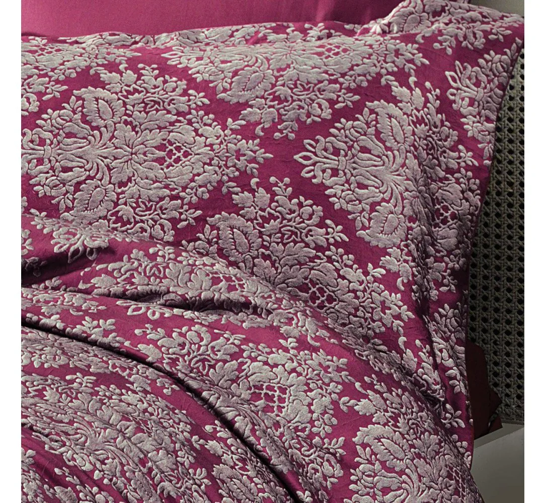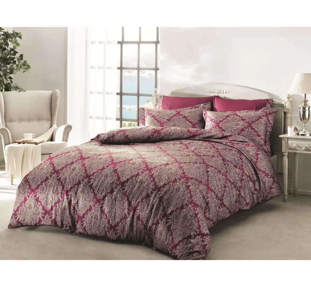 Pościel satynowa 6 elementowa wzór Scilia Bordo w rozmiarze 200 X 220 cm z kolekcji Wrinkle Satin firmy TIVOLYO HOME, to ekskluzywna pościel dla każdego kto w swojej sypialni ceni luksus i elegancje.