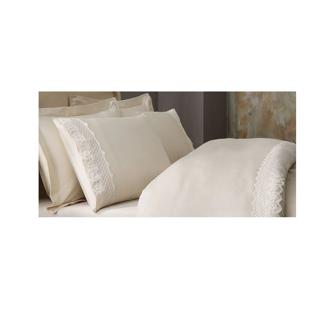 Luksusowa pościel z koronką 6 elementowa wzór Olivia Beige w rozmiarze 200 X 220 cm firmy TIVOLYO HOME z kolekcji Guipure, to ekskluzywna pościel dla każdego kto w swojej sypialni ceni luksus i elegancje.