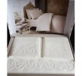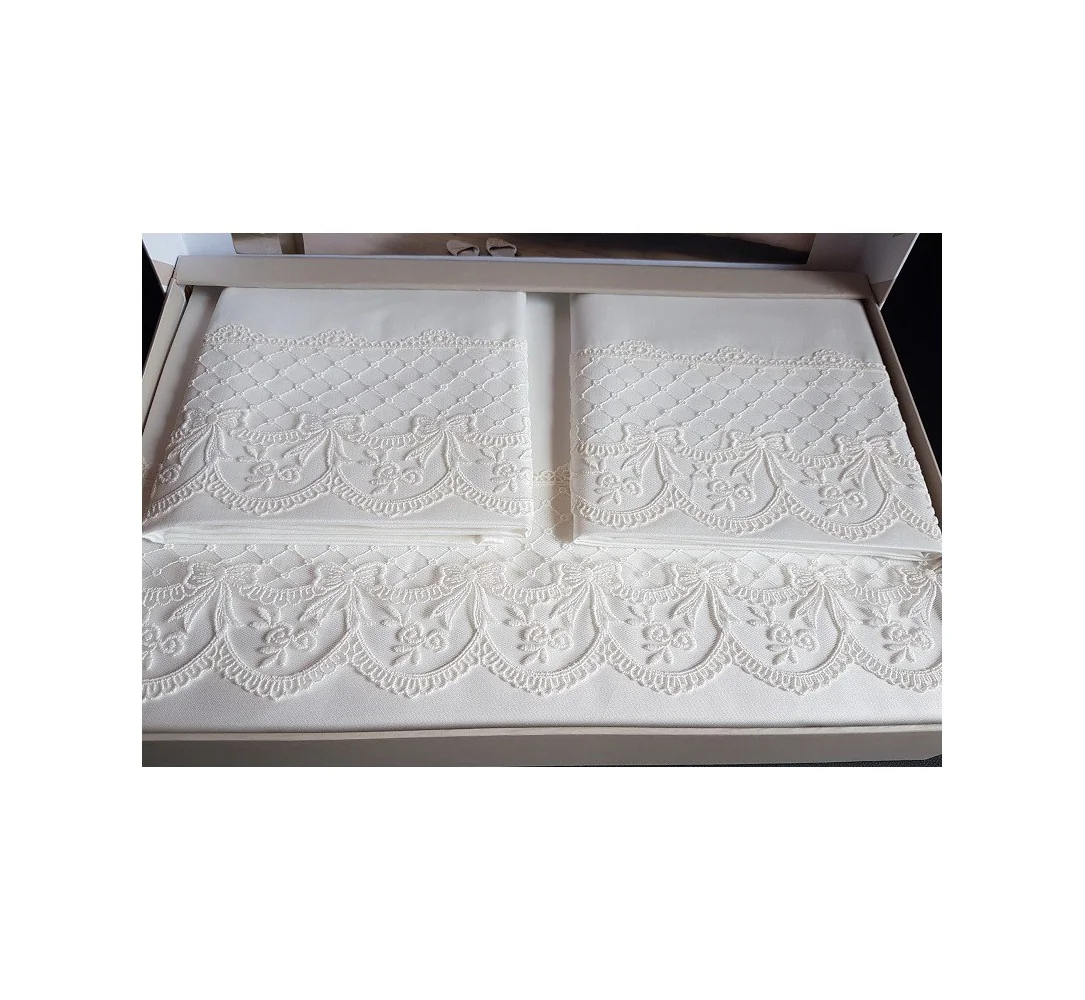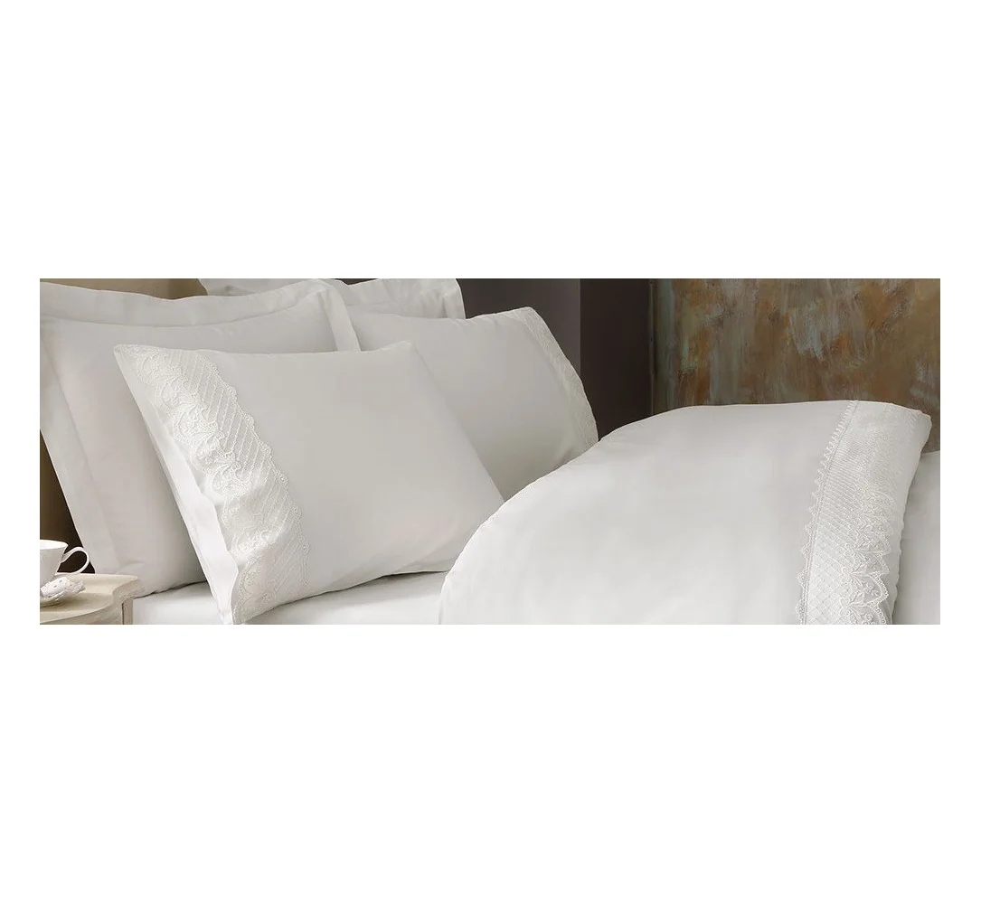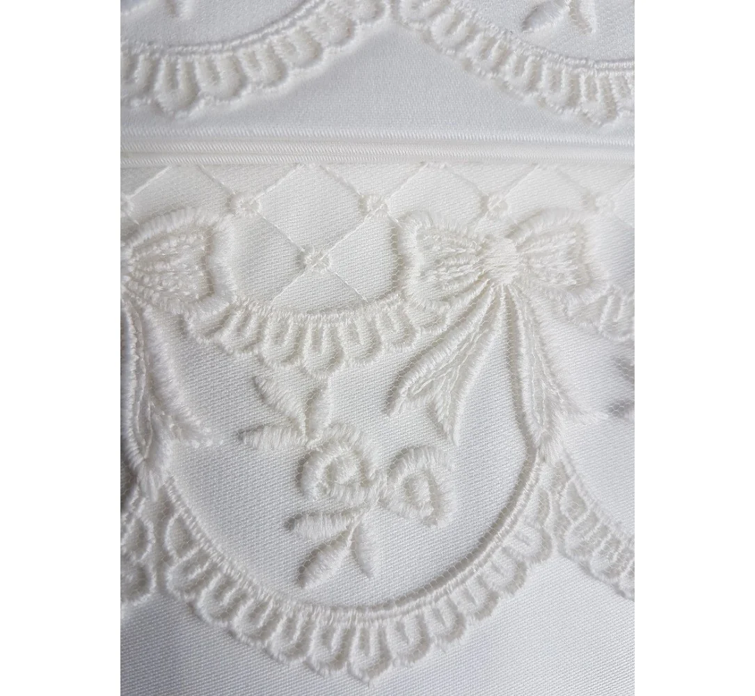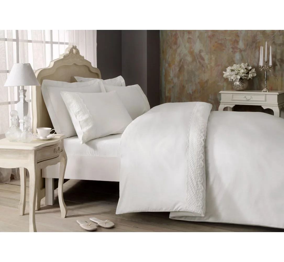 Ekskluzywny 6 częściowy komplet pościel z kolekcji Guipure został wykonany z najwyższej jakości 100 % bawełny o gęstym satynowym splocie jest miły i delikatny w dotyku. Efektowne dekoracyjne doszycia delikatnej koronki na pościeli sprawiają, że pościel nada wyrafinowany elegancki wygląd naszej sypialni. Subtelne wzornictwo oraz stonowana kolorystyka pozwoli dobrać komplet pościeli do każdej sypialni nadając jej niepowtarzalnego eleganckiego uroku.