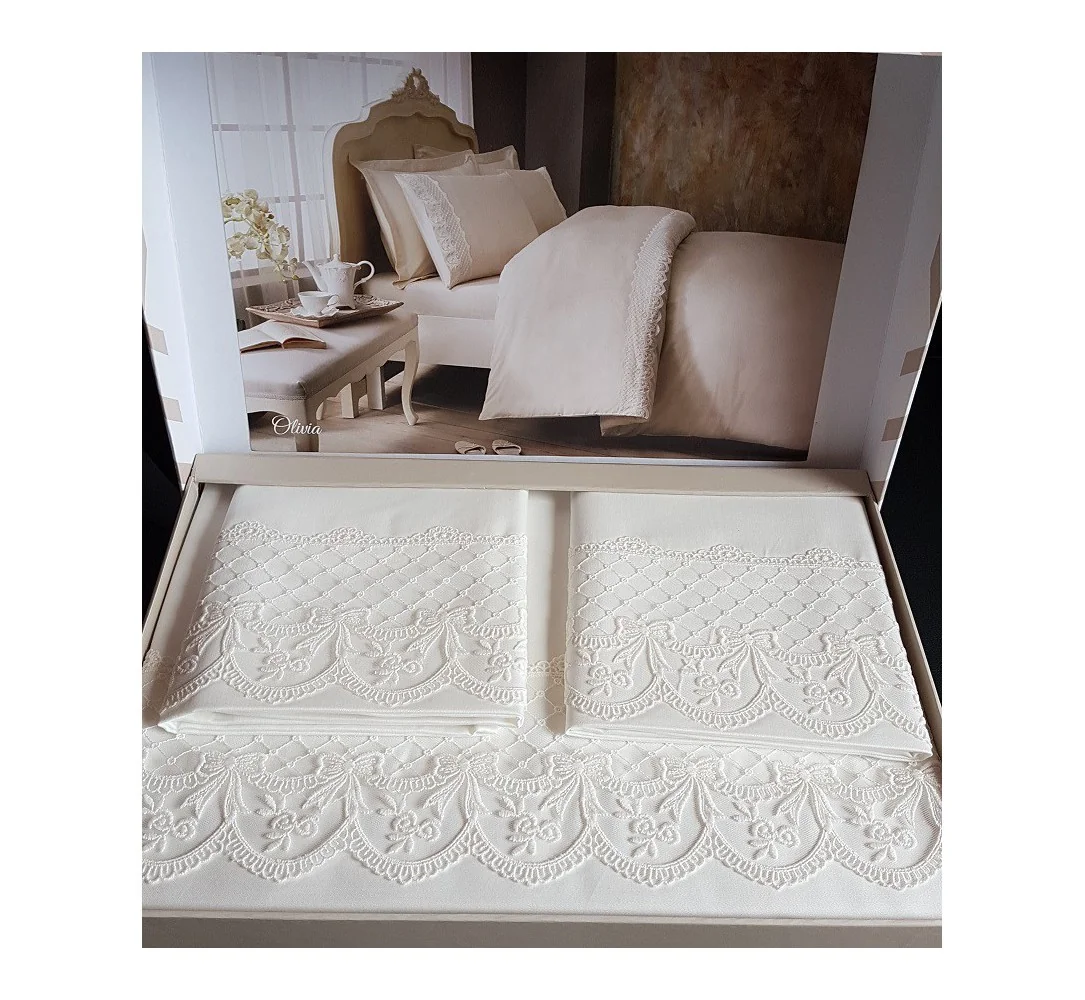 Luksusowa pościel z koronką 6 elementowa wzór Olivia White w rozmiarze 200 X 220 cm firmy TIVOLYO HOME z kolekcji Guipure, to ekskluzywna pościel dla każdego kto w swojej sypialni ceni luksus i elegancje.