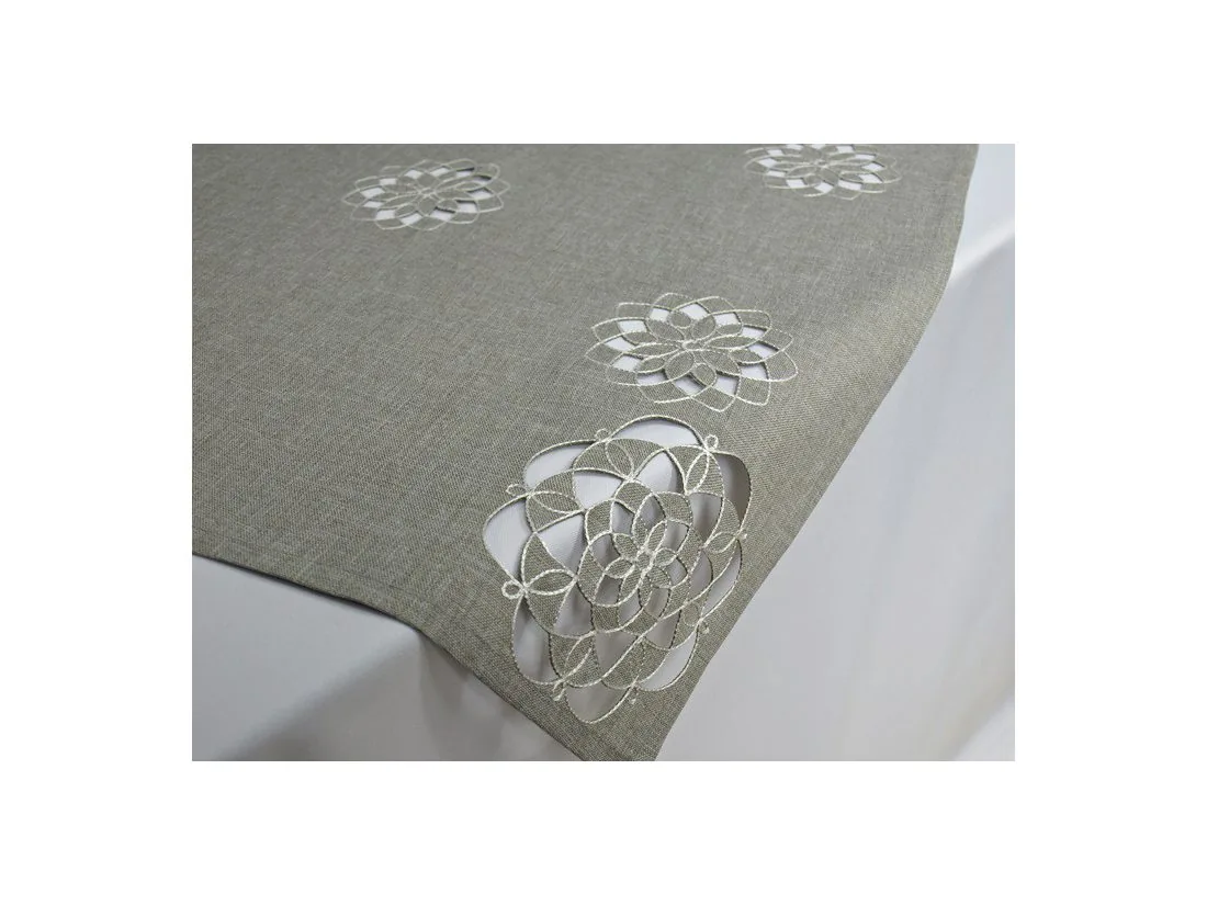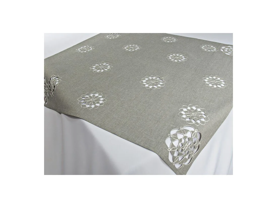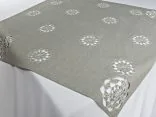 Haftowany bieżnik z delikatnym kwiatowym wzorem/ haft w kolorze białym/, w rozmiarze 85 x 85 cm w kolorze szarym / popielaty.