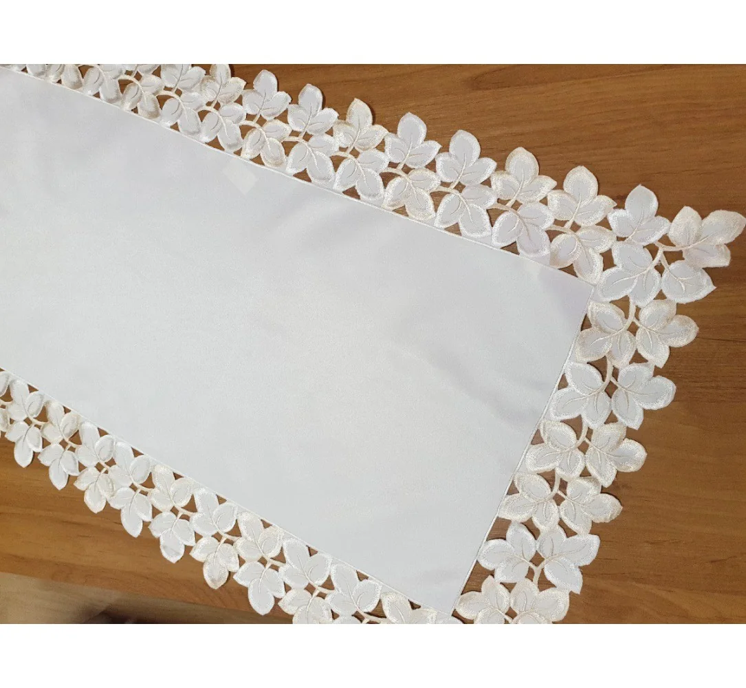 Dekoracyjny bieżnik haftowany w rozmiarze 50 x 100 cm w kolorze jasno kremowym to propozycja dla osób ceniących sobie klasykę oraz przede wszystkim wygodę.