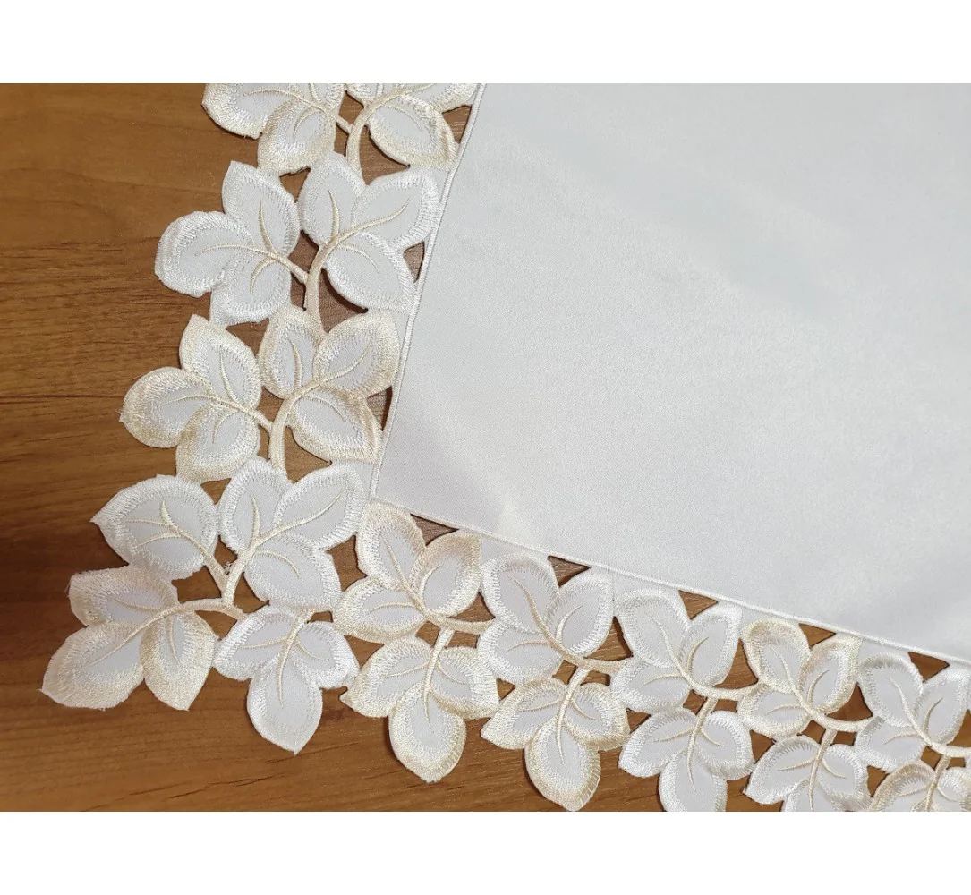 Haftowany Bieżnik w listki - 50x100 - 0112 Kremowe listki