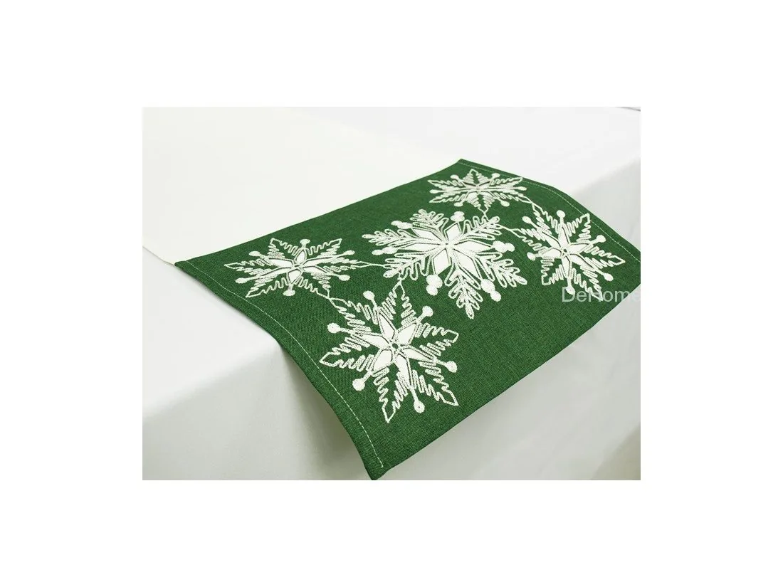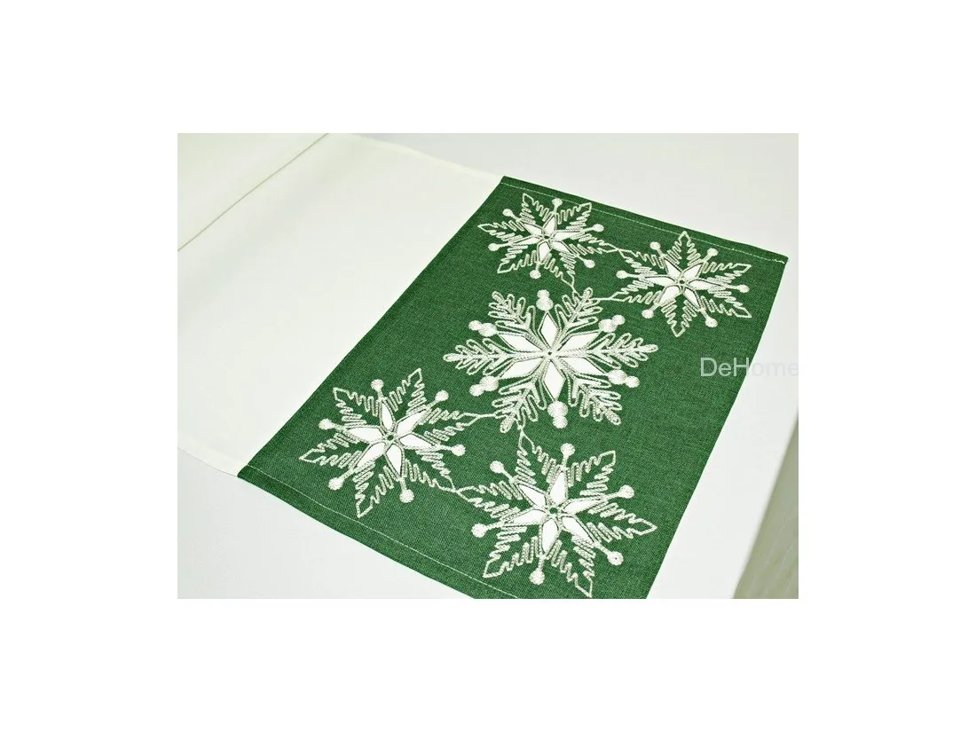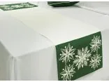 Haftowana nakładka świąteczna w rozmiarze 40x110 cm w kolorze zielonym z białym haftem -podszyty biała tkaniną.
