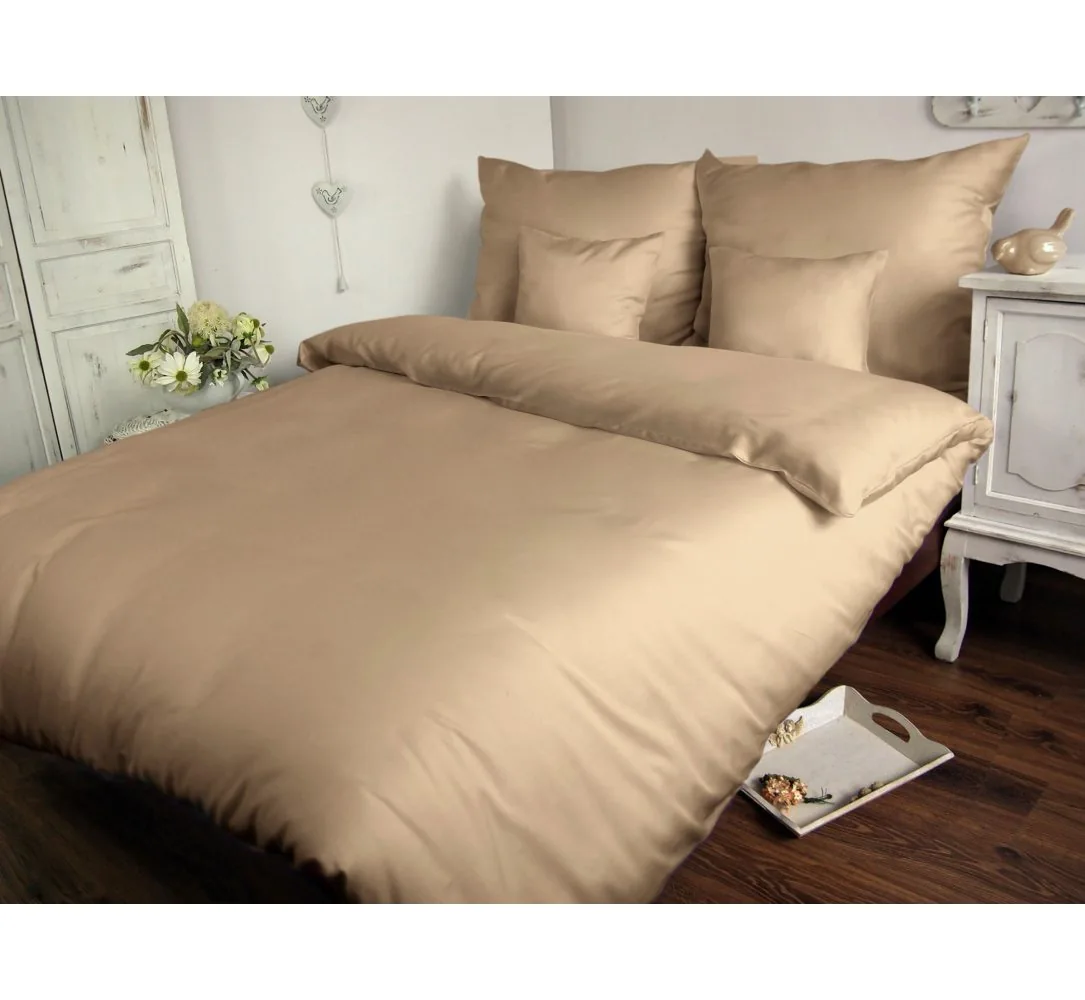 Komplet pościeli satynowej jednobarwnej w rozmiarze 160x200 cm z kolekcji Carmen w kolorze beżowym.