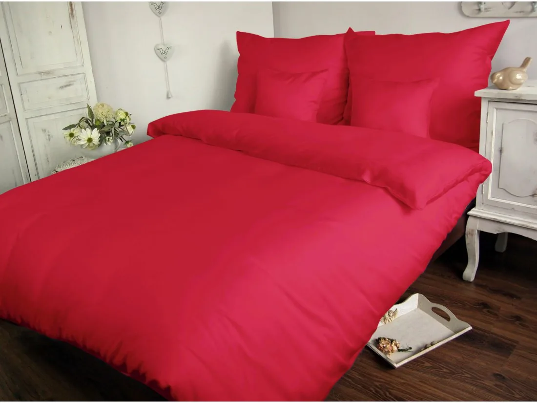 Komplet pościeli satynowej jednobarwnej w rozmiarze 160x200 cm firmy Darymex z kolekcji Carmen w kolorze koralowym.