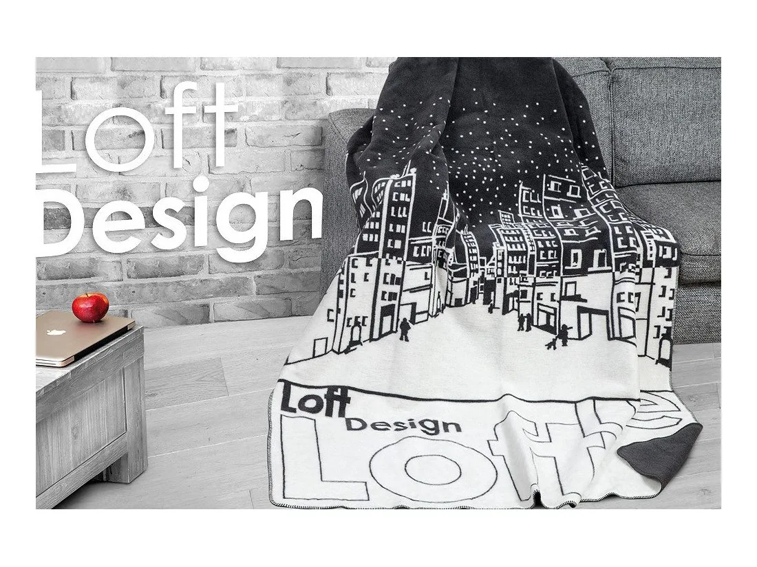 Atrakcyjny nowoczesny koc wzór City of Dreams 150x200 z kolekcji Glamour w biało / mleczno czarnej kolorystyce firmy Greno podkreśli oryginalność każdej sypialni.