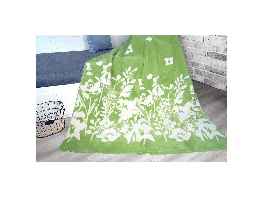 Ciepły koc wzór Flo Zielony w rozmiarze 150 x 200 cm firmy Greno z kolekcji Glamour, podkreśli oryginalność każdej sypialni.