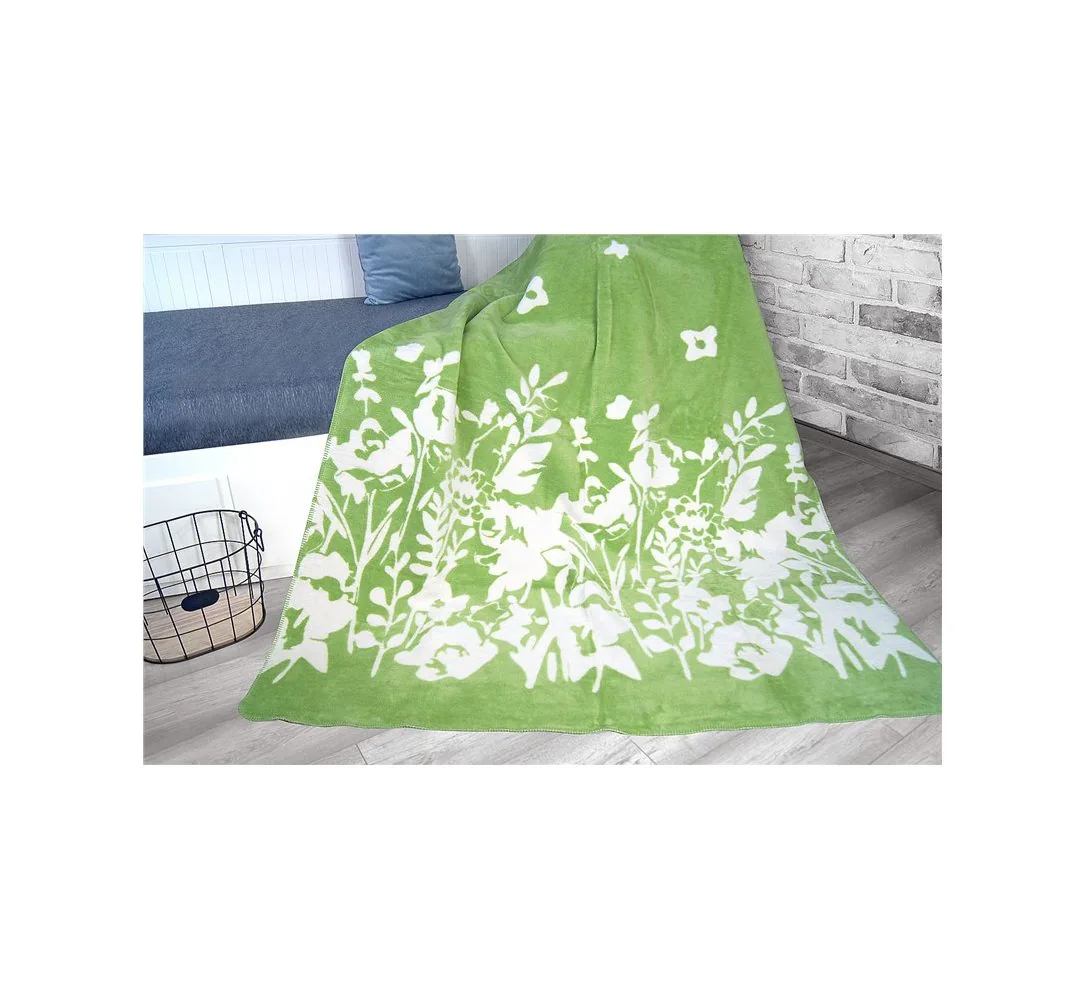 Koc Glamour - Kwiatuszki - biało - zielone - Flo zielony - 150x200 Greno