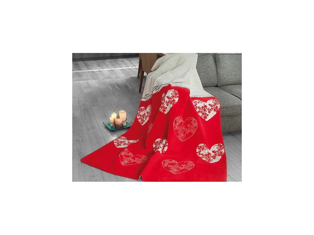 Atrakcyjny, nowoczesny Koc Romantic 150x200 w pięknej czerwonej miłosnej kolorystyce firmy Greno podkreśli oryginalność każdej sypialni.