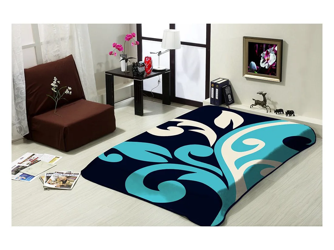 Koc akrylowy 160x220 Granatowo turkusowy Powój 266
