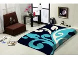 Luksusowy koc akrylowy 160x220 z fantazyjnym wzorem Powój 266 w ciekawej granatowo turkusowej kolorystyce podkreśli oryginalność każdej sypialni.