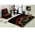 Luksusowy koc z akrylu 160x220 z finezyjnym wzorem 261 w ciekawej czarno szaro czerwonej kolorystyce podkreśli oryginalność każdej sypialni.
