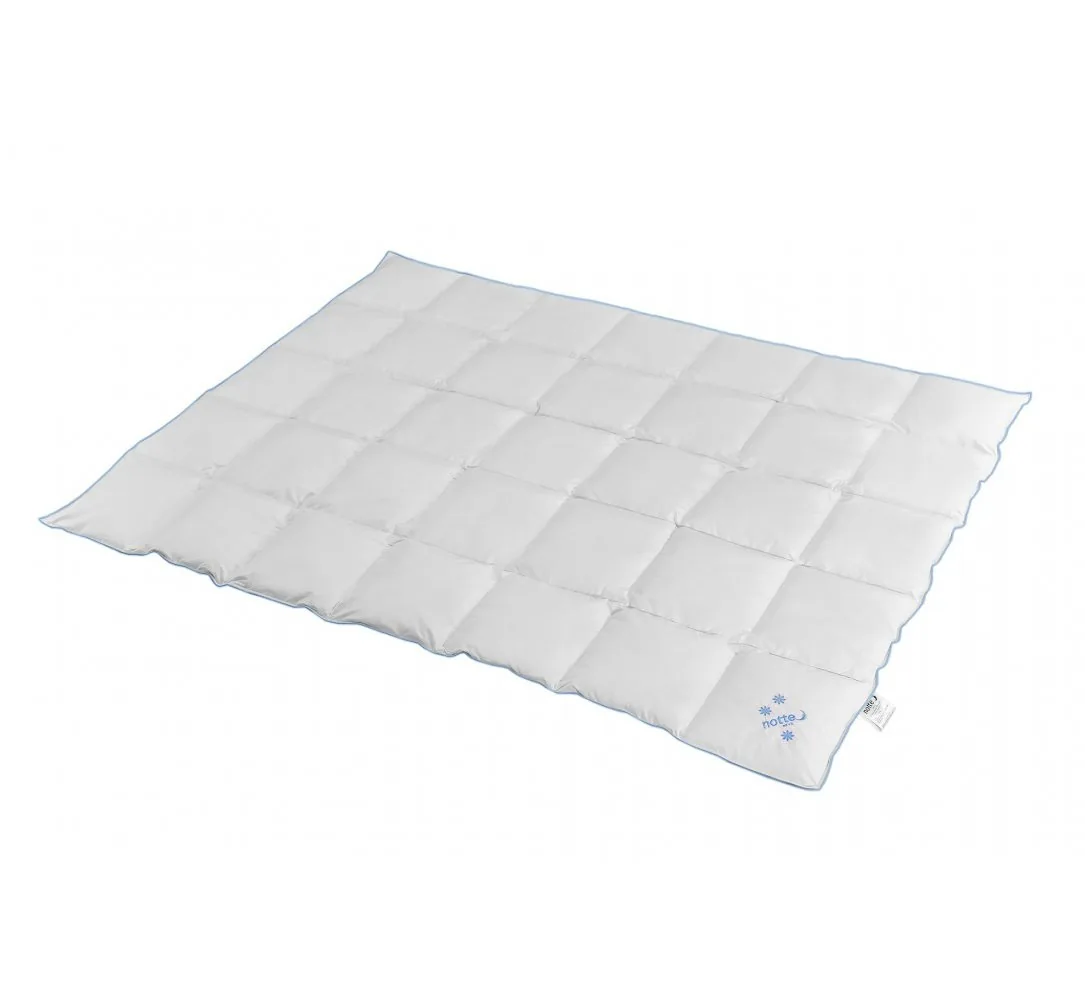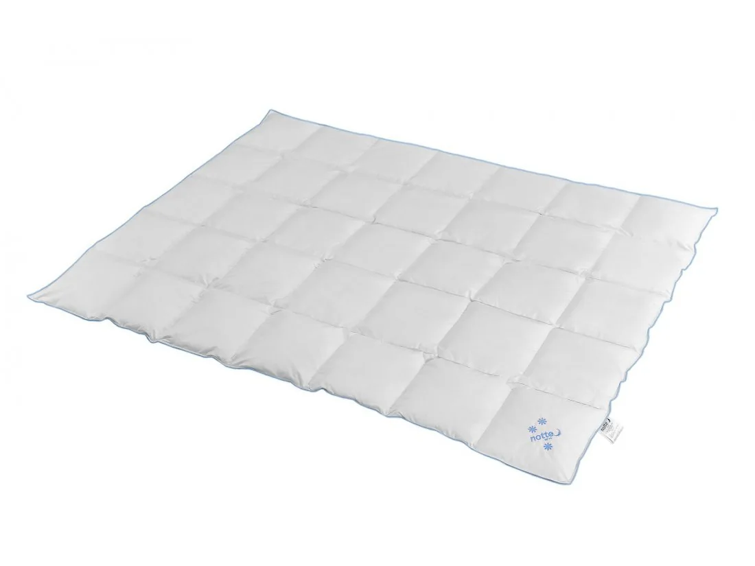 Kołdra Notte Neve Medium 140x200 to kołdra całoroczna która wypełniona jest 90 % nowym puchem.