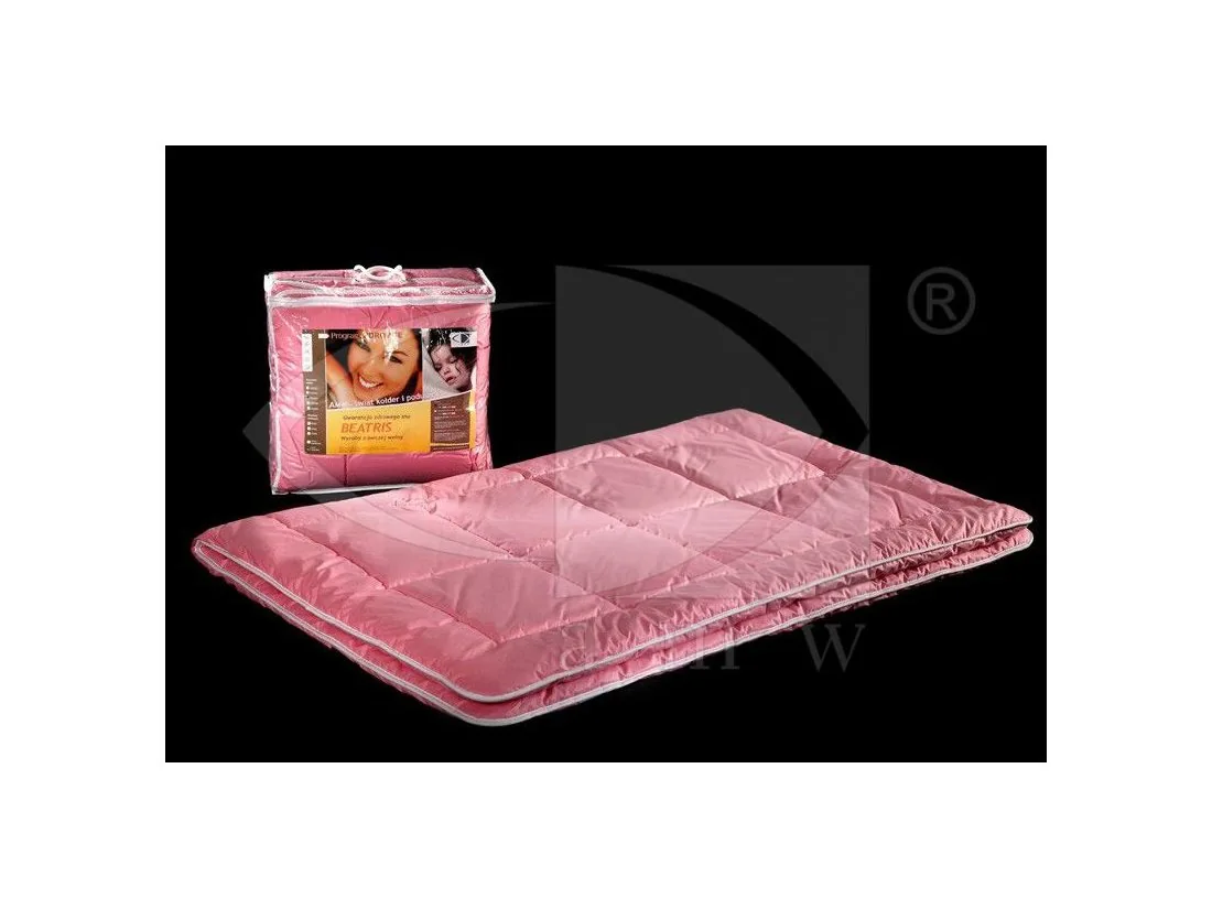 Poszycie kołdry w kolorze rózowym wykonane z polycottonu tj bawełny z poliestrem ( 52% poliester, 48% bawełna) - dzięki czemu tkania ma delikatność bawełny oraz wytrzymałość poliestru.