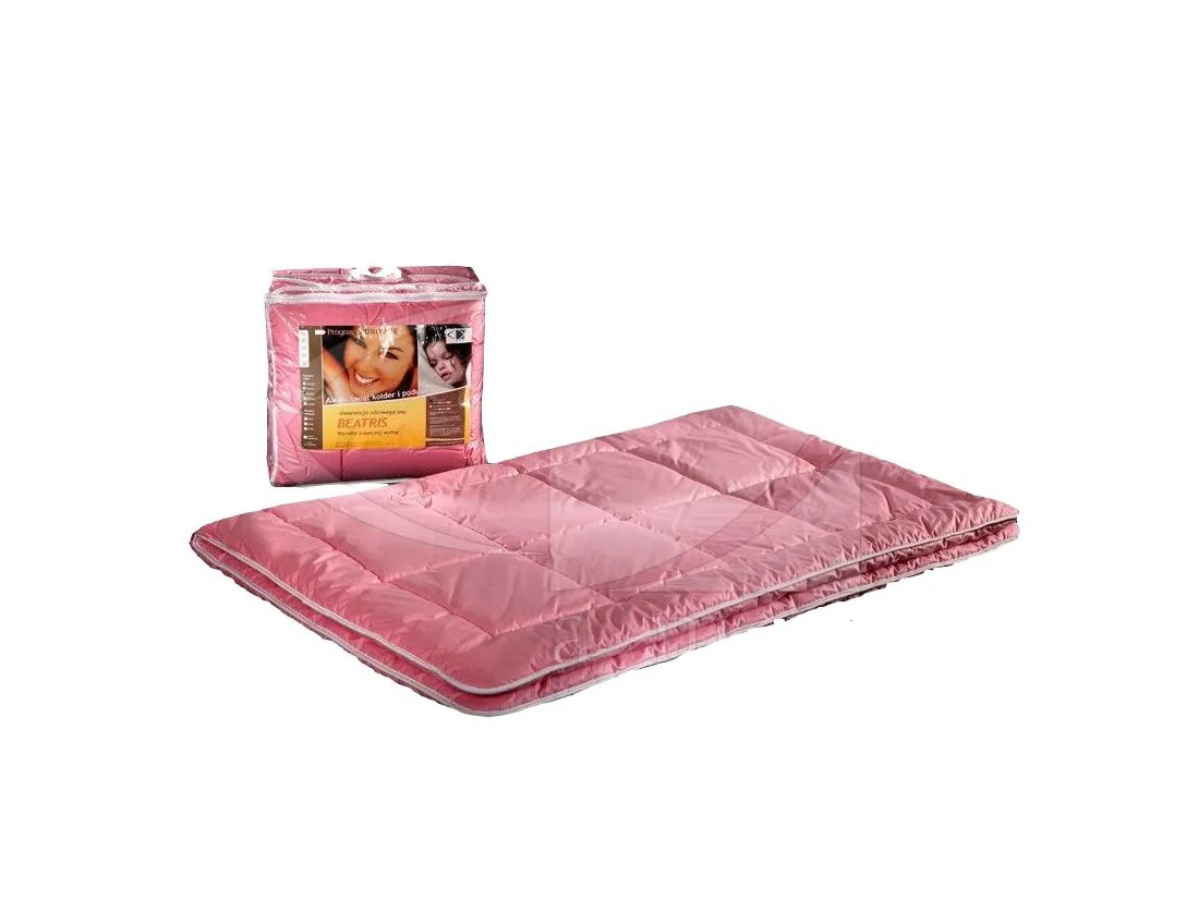 Poszycie kołdry w kolorze różowym wykonane z polycottonu tj bawełny z poliestrem ( 52% poliester, 48% bawełna) - dzięki czemu tkania ma delikatność bawełny oraz wytrzymałość poliestru.
